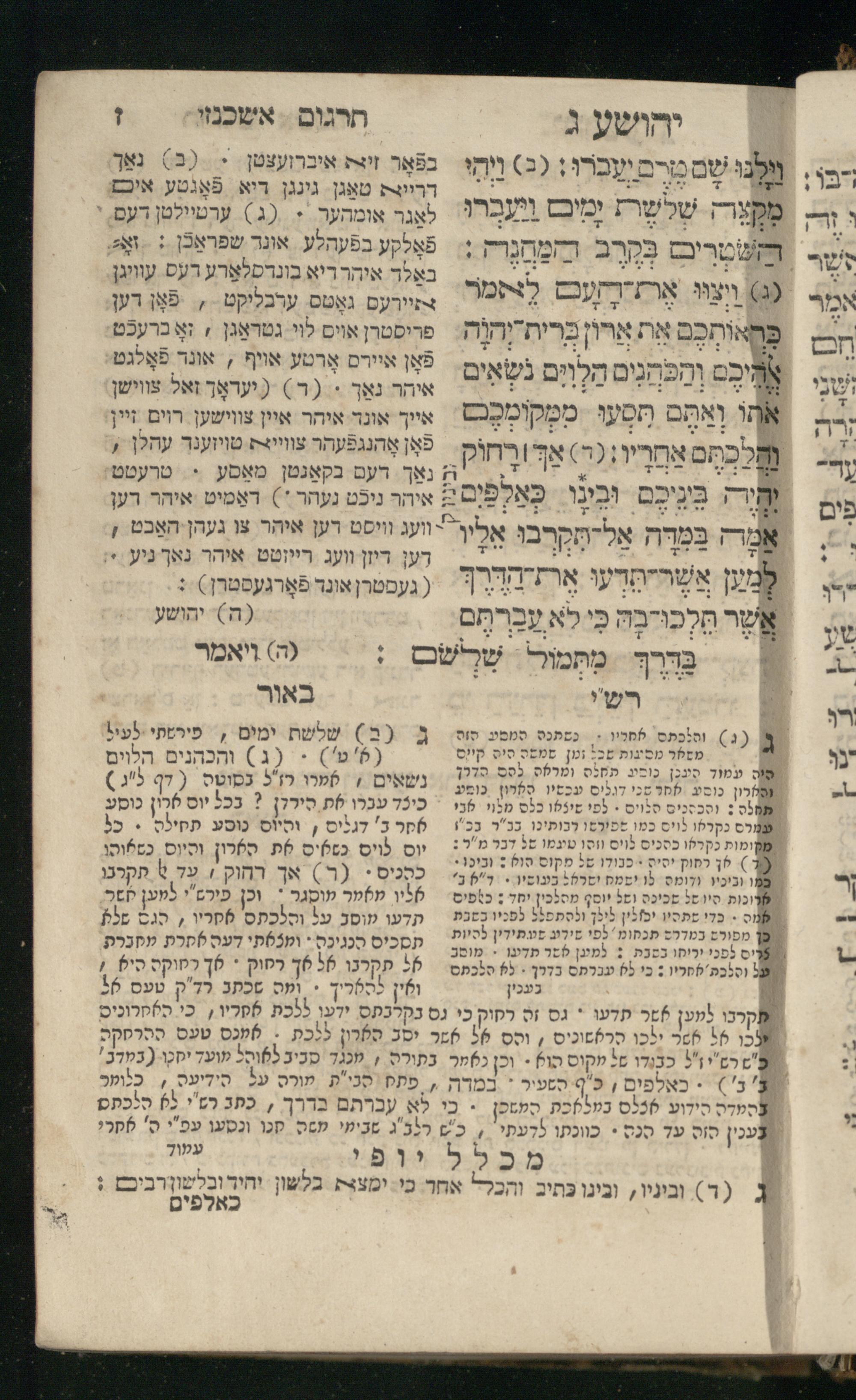Sefer Yehoshuʿa / ʿim targum Ashkenazi, u-veʾur, meturgam u-mevoʾar me-et Meʾir Oborniḳ ʿim perush Rashi z.l. u-ferush Mikhlal yofiספר יהושע / עם תרגום אשכנזי, ובאור, מתורגם ומבואר מאת ר׳ מאיר אברניק עם פירוש רש״י ז״ל ופירוש מכלל יופי