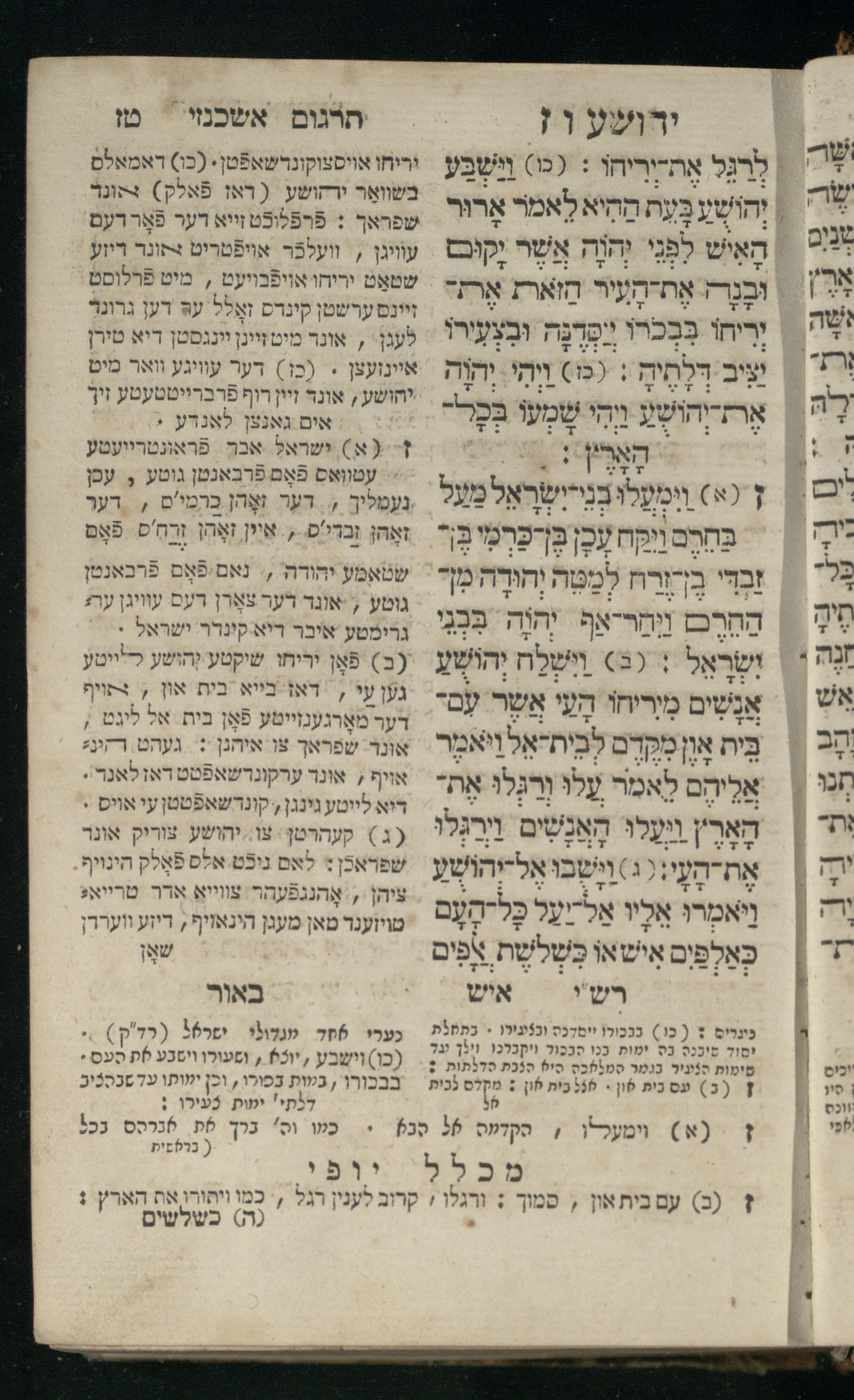 Sefer Yehoshuʿa / ʿim targum Ashkenazi, u-veʾur, meturgam u-mevoʾar me-et Meʾir Oborniḳ ʿim perush Rashi z.l. u-ferush Mikhlal yofiספר יהושע / עם תרגום אשכנזי, ובאור, מתורגם ומבואר מאת ר׳ מאיר אברניק עם פירוש רש״י ז״ל ופירוש מכלל יופי