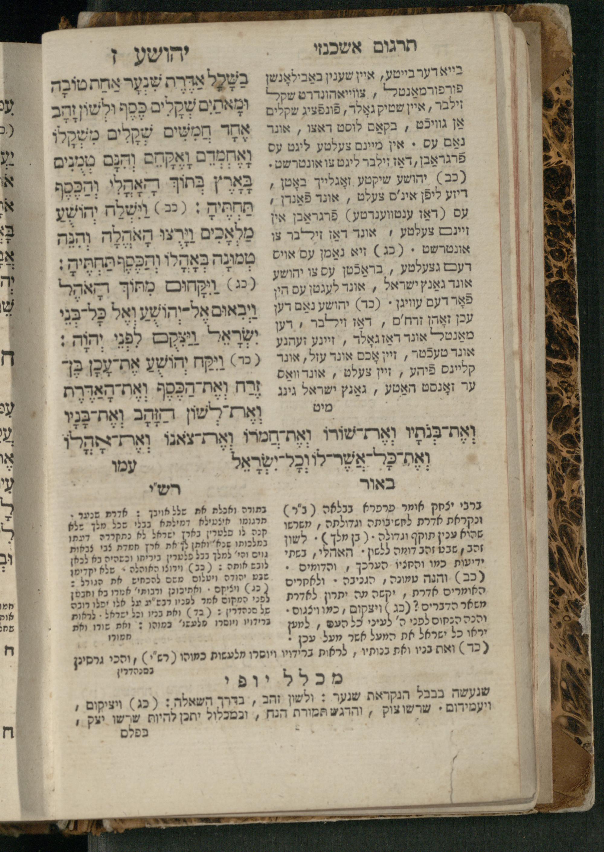 Sefer Yehoshuʿa / ʿim targum Ashkenazi, u-veʾur, meturgam u-mevoʾar me-et Meʾir Oborniḳ ʿim perush Rashi z.l. u-ferush Mikhlal yofiספר יהושע / עם תרגום אשכנזי, ובאור, מתורגם ומבואר מאת ר׳ מאיר אברניק עם פירוש רש״י ז״ל ופירוש מכלל יופי