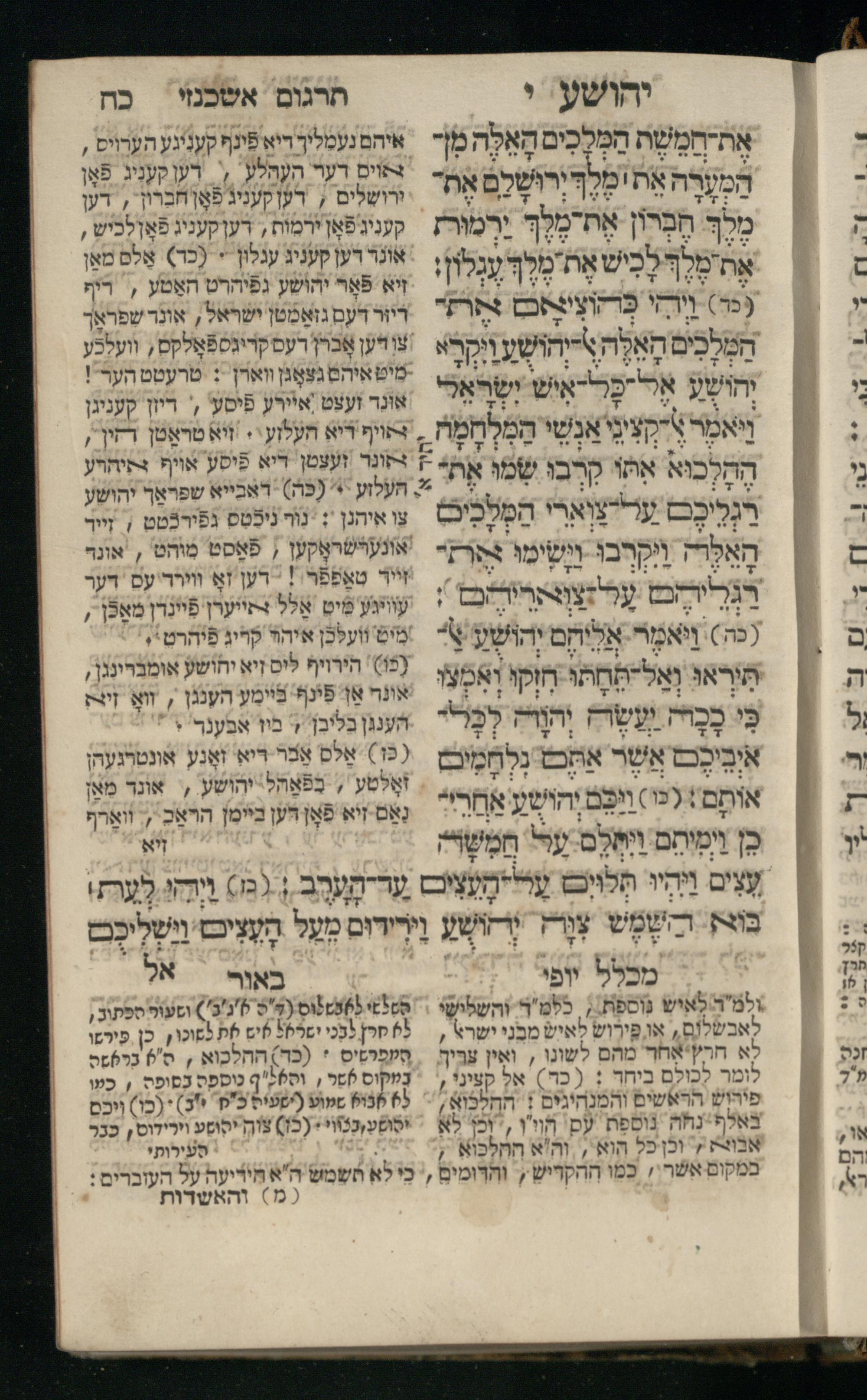 Sefer Yehoshuʿa / ʿim targum Ashkenazi, u-veʾur, meturgam u-mevoʾar me-et Meʾir Oborniḳ ʿim perush Rashi z.l. u-ferush Mikhlal yofiספר יהושע / עם תרגום אשכנזי, ובאור, מתורגם ומבואר מאת ר׳ מאיר אברניק עם פירוש רש״י ז״ל ופירוש מכלל יופי