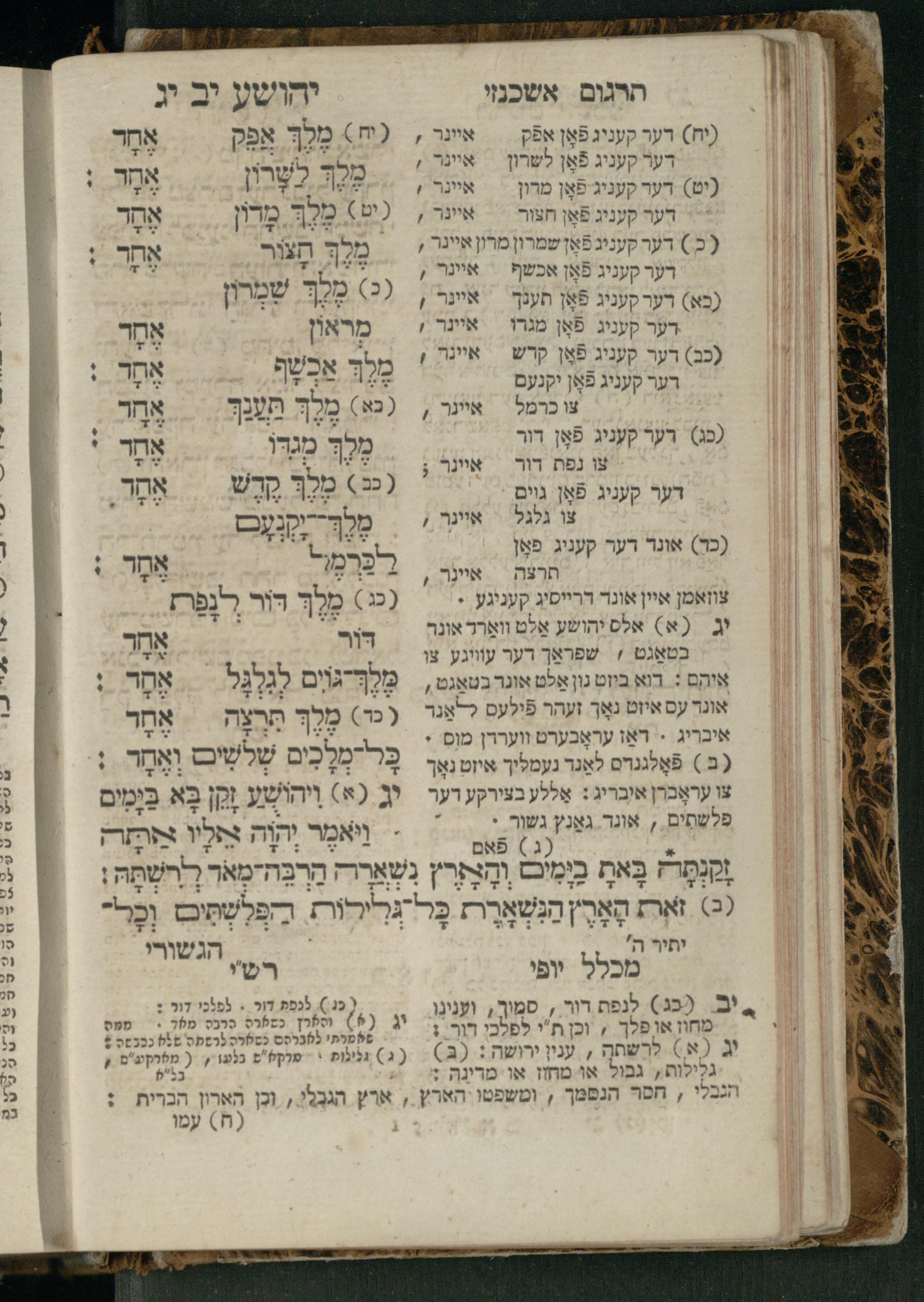 Sefer Yehoshuʿa / ʿim targum Ashkenazi, u-veʾur, meturgam u-mevoʾar me-et Meʾir Oborniḳ ʿim perush Rashi z.l. u-ferush Mikhlal yofiספר יהושע / עם תרגום אשכנזי, ובאור, מתורגם ומבואר מאת ר׳ מאיר אברניק עם פירוש רש״י ז״ל ופירוש מכלל יופי
