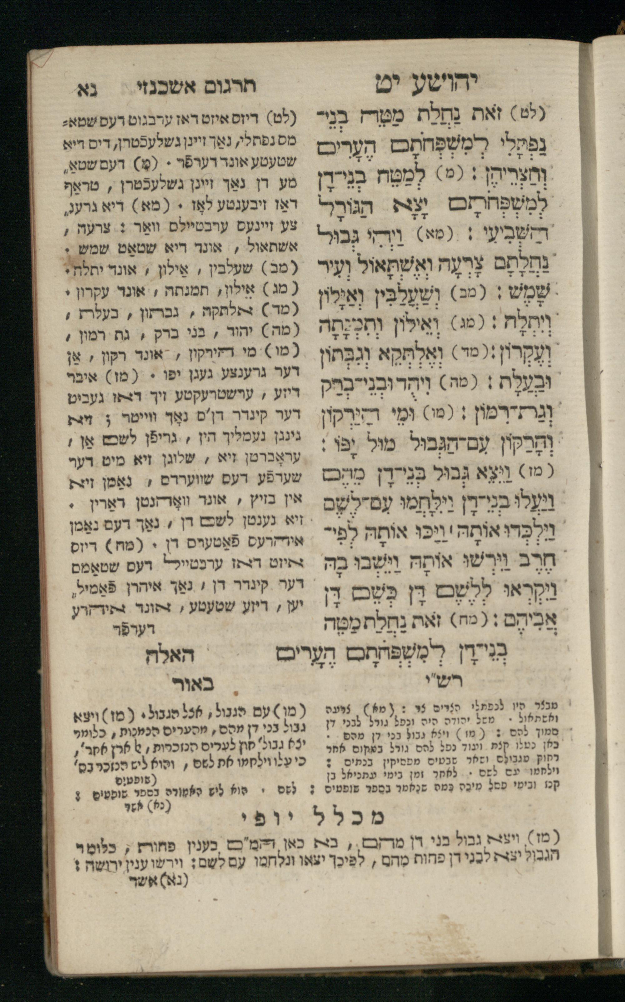 Sefer Yehoshuʿa / ʿim targum Ashkenazi, u-veʾur, meturgam u-mevoʾar me-et Meʾir Oborniḳ ʿim perush Rashi z.l. u-ferush Mikhlal yofiספר יהושע / עם תרגום אשכנזי, ובאור, מתורגם ומבואר מאת ר׳ מאיר אברניק עם פירוש רש״י ז״ל ופירוש מכלל יופי