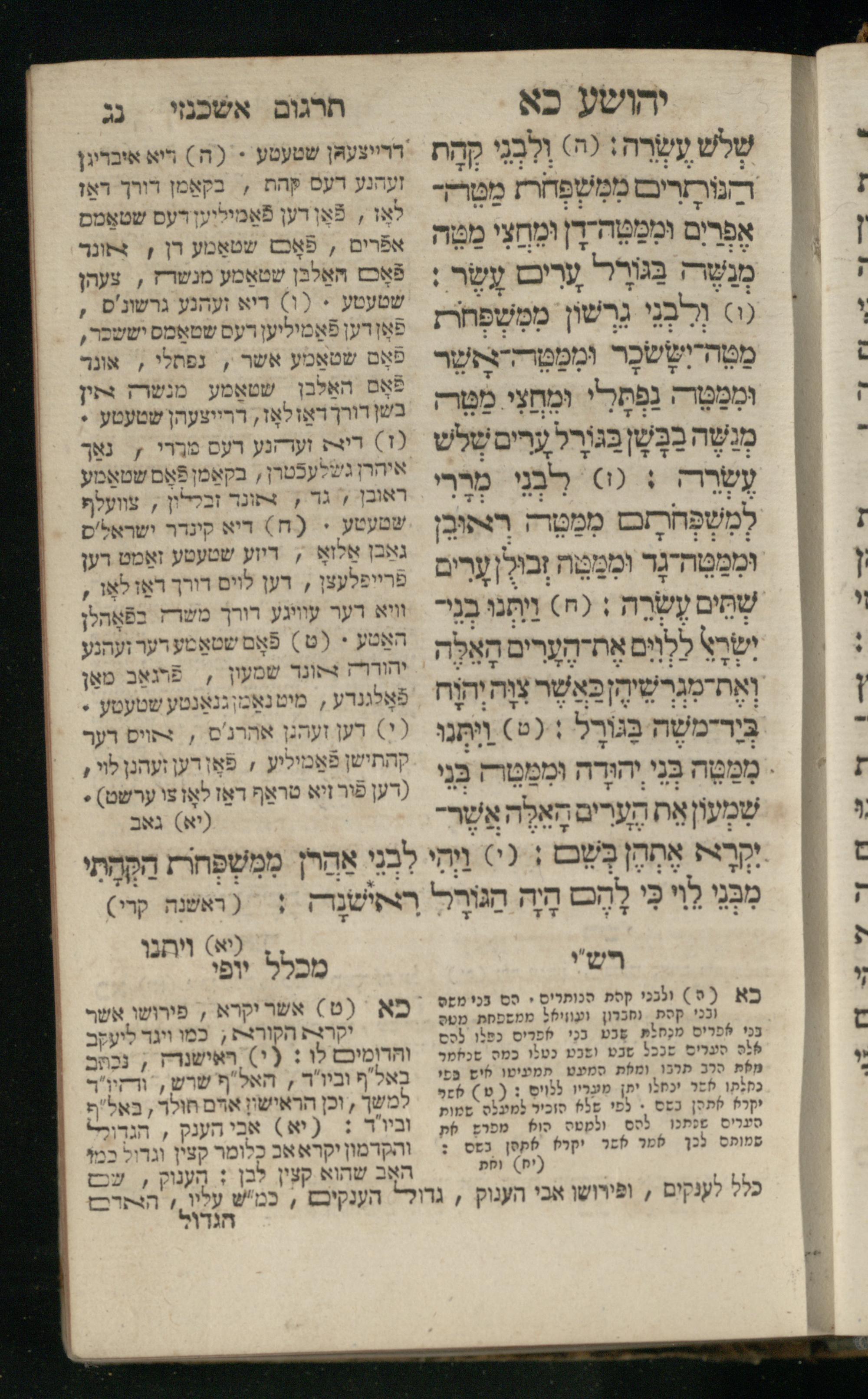 Sefer Yehoshuʿa / ʿim targum Ashkenazi, u-veʾur, meturgam u-mevoʾar me-et Meʾir Oborniḳ ʿim perush Rashi z.l. u-ferush Mikhlal yofiספר יהושע / עם תרגום אשכנזי, ובאור, מתורגם ומבואר מאת ר׳ מאיר אברניק עם פירוש רש״י ז״ל ופירוש מכלל יופי