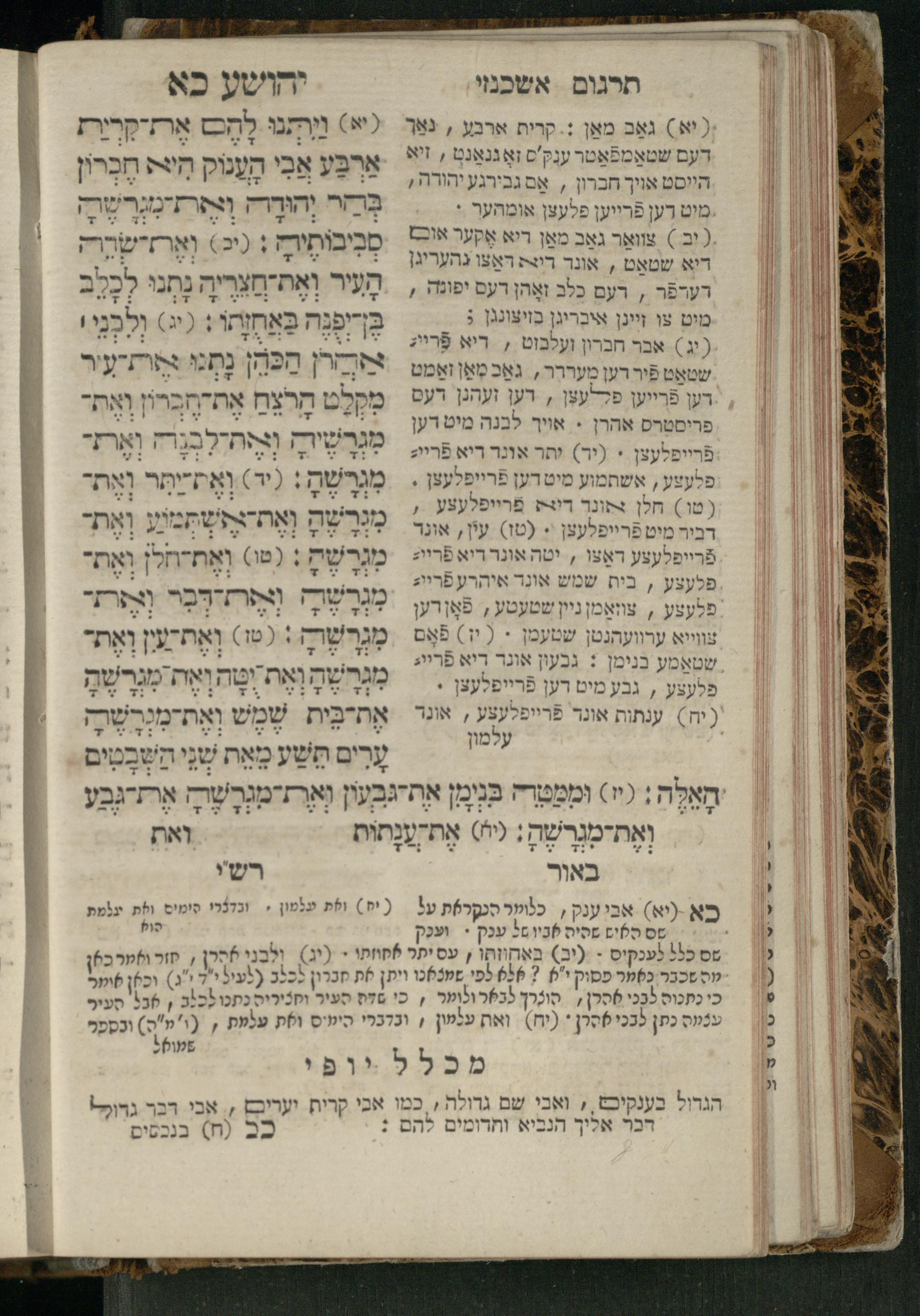 Sefer Yehoshuʿa / ʿim targum Ashkenazi, u-veʾur, meturgam u-mevoʾar me-et Meʾir Oborniḳ ʿim perush Rashi z.l. u-ferush Mikhlal yofiספר יהושע / עם תרגום אשכנזי, ובאור, מתורגם ומבואר מאת ר׳ מאיר אברניק עם פירוש רש״י ז״ל ופירוש מכלל יופי