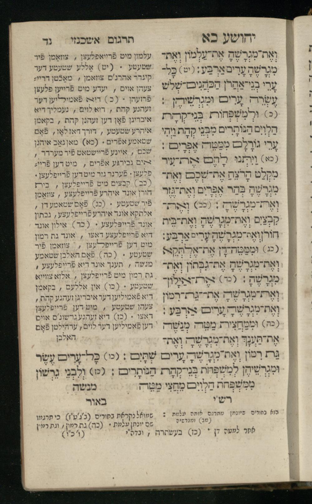 Sefer Yehoshuʿa / ʿim targum Ashkenazi, u-veʾur, meturgam u-mevoʾar me-et Meʾir Oborniḳ ʿim perush Rashi z.l. u-ferush Mikhlal yofiספר יהושע / עם תרגום אשכנזי, ובאור, מתורגם ומבואר מאת ר׳ מאיר אברניק עם פירוש רש״י ז״ל ופירוש מכלל יופי