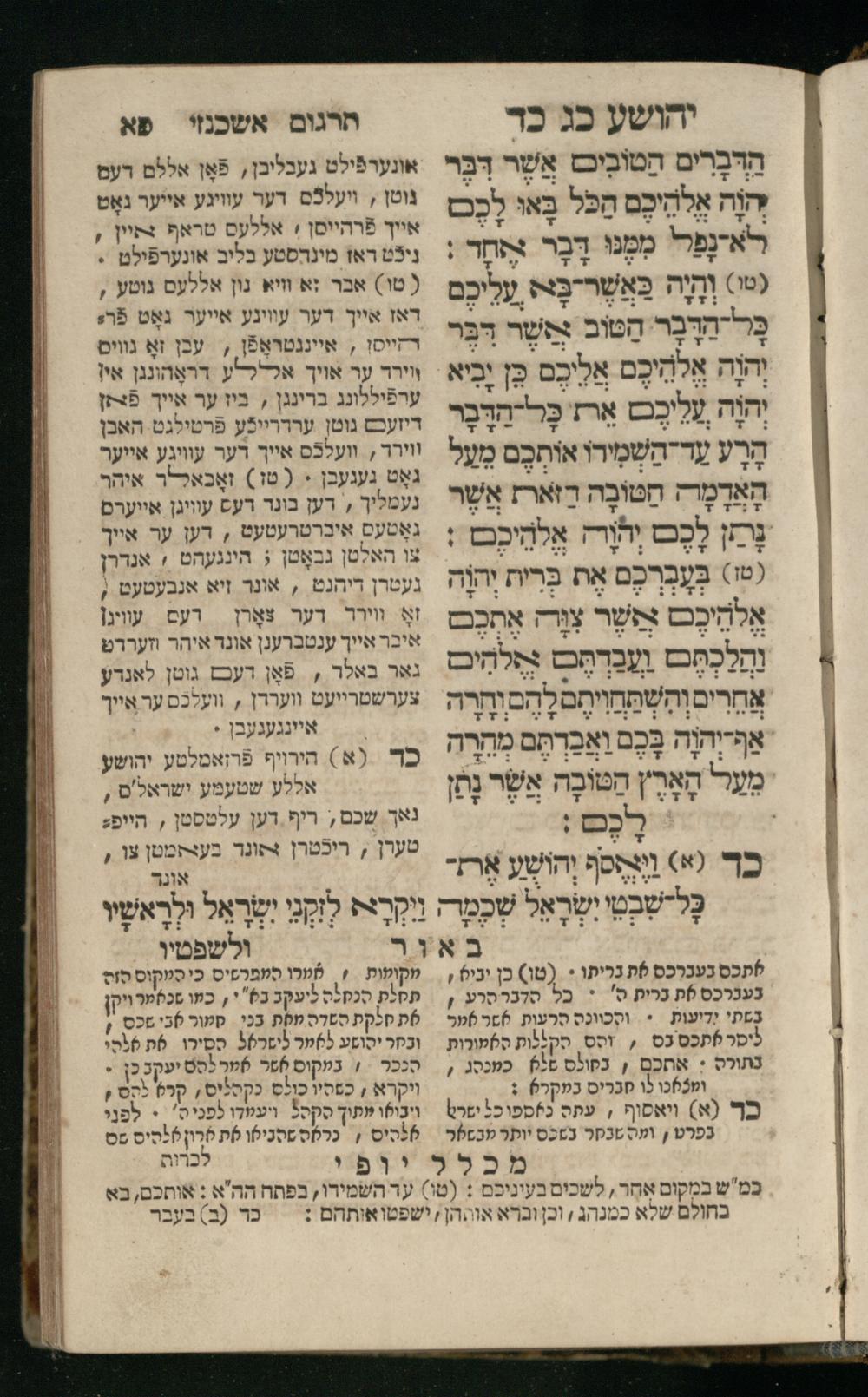 Sefer Yehoshuʿa / ʿim targum Ashkenazi, u-veʾur, meturgam u-mevoʾar me-et Meʾir Oborniḳ ʿim perush Rashi z.l. u-ferush Mikhlal yofiספר יהושע / עם תרגום אשכנזי, ובאור, מתורגם ומבואר מאת ר׳ מאיר אברניק עם פירוש רש״י ז״ל ופירוש מכלל יופי