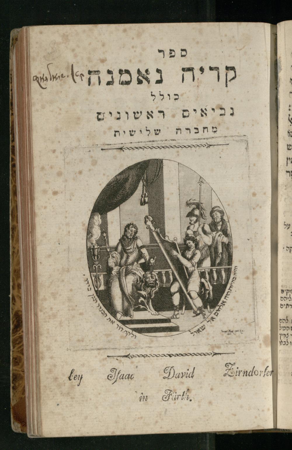 Sefer Shemuʾel 1 / ʿim targum Ashkenazi, u-veʾur, kemo she-nidpas be-Ṿin [meturgam u-mevoʾar ʿal-yede R. Meʾir Oborniḳ], ṿe-hosafti bo pe. ... Rashi z.ts.l. ... Ṿe-nilṿeh elaṿ, pe. Mikhlal yofi .. ṿe-gam Tokheḥat ḥayim mi-R.ʿA. Figo z.ts.l. ...ספר שמואל א / עם תרגום אשכנזי, ובאור, כמו שנדפס בווין [מתורגם ומבואר על ידי ר׳ מאיר אברניק], והוספתי בו פי׳ ... רש״י זצ״ל. ... ונלוה אליו, פי׳ מכלל יופי ... וגם תוכחת חיים, מר״ע פיגו זצ״ל