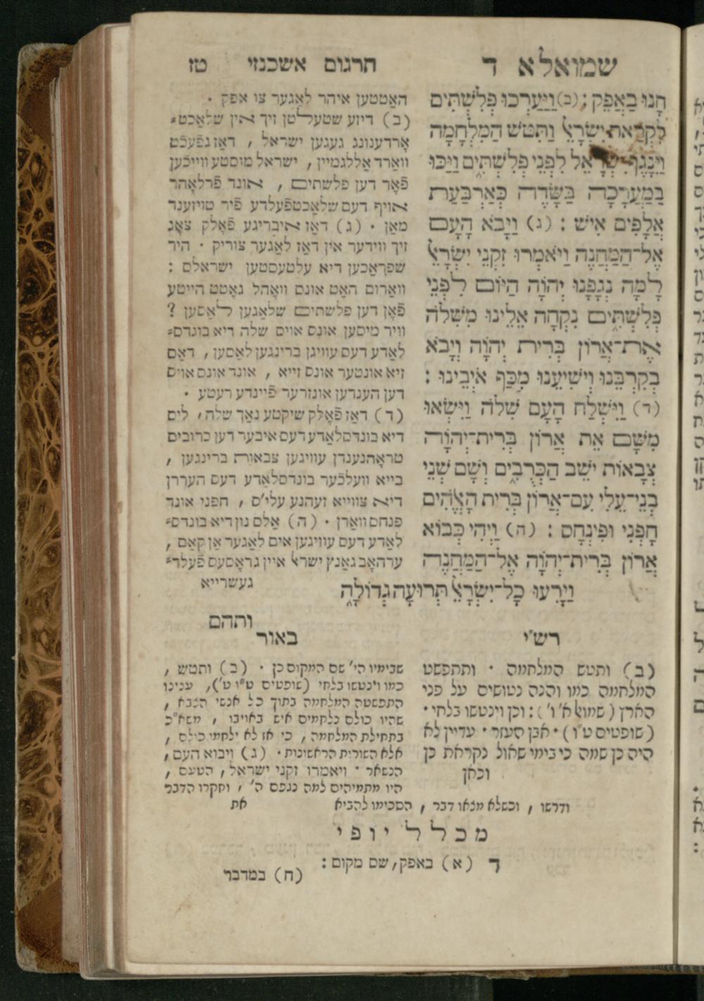 Sefer Shemuʾel 1 / ʿim targum Ashkenazi, u-veʾur, kemo she-nidpas be-Ṿin [meturgam u-mevoʾar ʿal-yede R. Meʾir Oborniḳ], ṿe-hosafti bo pe. ... Rashi z.ts.l. ... Ṿe-nilṿeh elaṿ, pe. Mikhlal yofi .. ṿe-gam Tokheḥat ḥayim mi-R.ʿA. Figo z.ts.l. ...ספר שמואל א / עם תרגום אשכנזי, ובאור, כמו שנדפס בווין [מתורגם ומבואר על ידי ר׳ מאיר אברניק], והוספתי בו פי׳ ... רש״י זצ״ל. ... ונלוה אליו, פי׳ מכלל יופי ... וגם תוכחת חיים, מר״ע פיגו זצ״ל