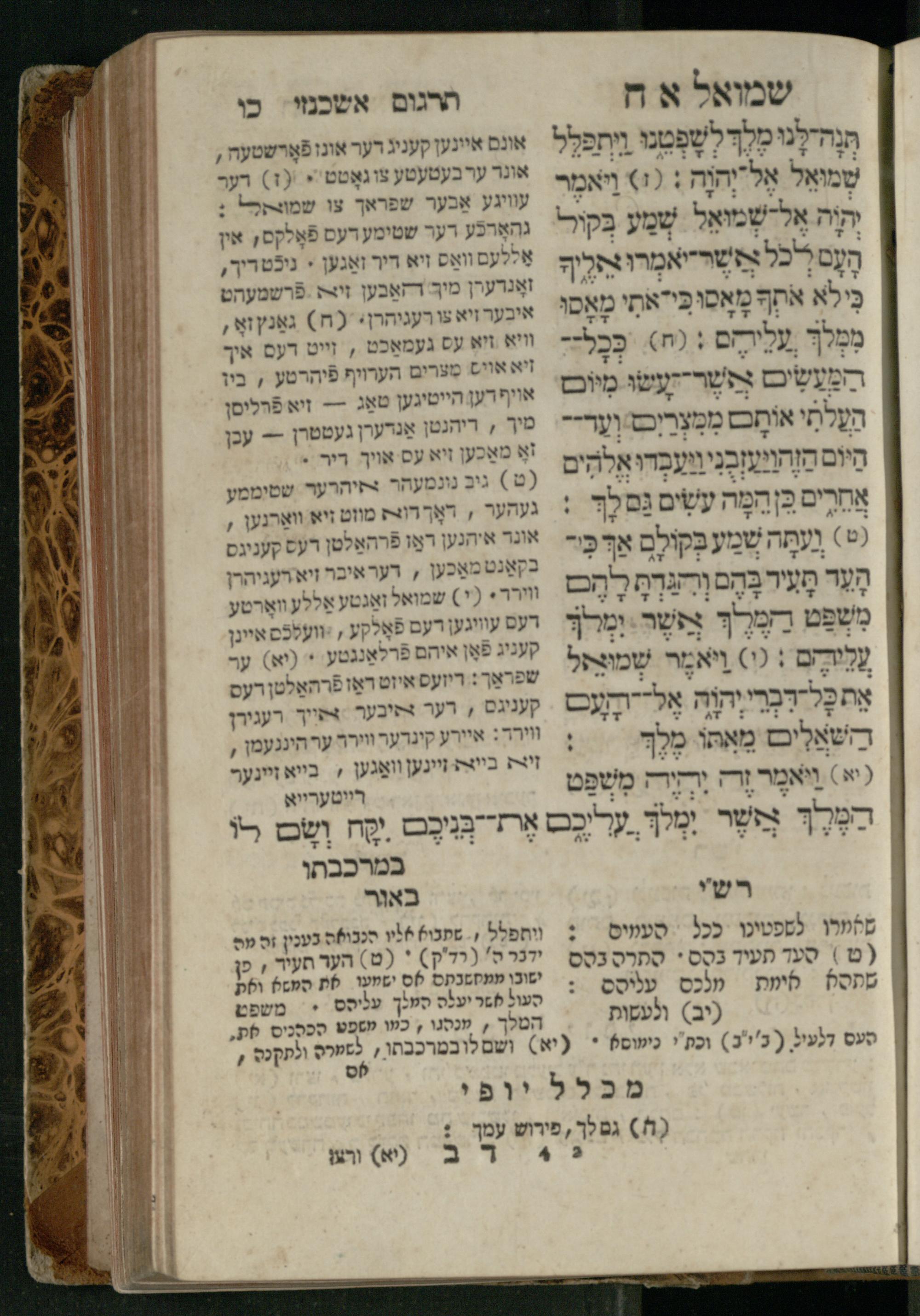Sefer Shemuʾel 1 / ʿim targum Ashkenazi, u-veʾur, kemo she-nidpas be-Ṿin [meturgam u-mevoʾar ʿal-yede R. Meʾir Oborniḳ], ṿe-hosafti bo pe. ... Rashi z.ts.l. ... Ṿe-nilṿeh elaṿ, pe. Mikhlal yofi .. ṿe-gam Tokheḥat ḥayim mi-R.ʿA. Figo z.ts.l. ...ספר שמואל א / עם תרגום אשכנזי, ובאור, כמו שנדפס בווין [מתורגם ומבואר על ידי ר׳ מאיר אברניק], והוספתי בו פי׳ ... רש״י זצ״ל. ... ונלוה אליו, פי׳ מכלל יופי ... וגם תוכחת חיים, מר״ע פיגו זצ״ל