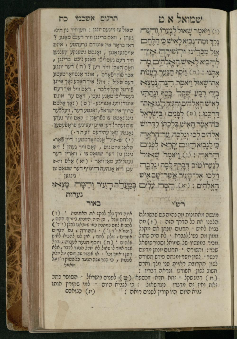 Sefer Shemuʾel 1 / ʿim targum Ashkenazi, u-veʾur, kemo she-nidpas be-Ṿin [meturgam u-mevoʾar ʿal-yede R. Meʾir Oborniḳ], ṿe-hosafti bo pe. ... Rashi z.ts.l. ... Ṿe-nilṿeh elaṿ, pe. Mikhlal yofi .. ṿe-gam Tokheḥat ḥayim mi-R.ʿA. Figo z.ts.l. ...ספר שמואל א / עם תרגום אשכנזי, ובאור, כמו שנדפס בווין [מתורגם ומבואר על ידי ר׳ מאיר אברניק], והוספתי בו פי׳ ... רש״י זצ״ל. ... ונלוה אליו, פי׳ מכלל יופי ... וגם תוכחת חיים, מר״ע פיגו זצ״ל