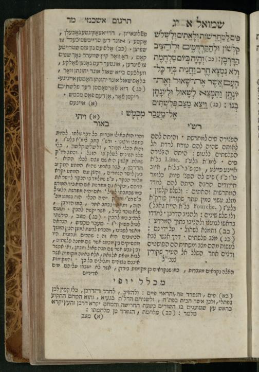 Sefer Shemuʾel 1 / ʿim targum Ashkenazi, u-veʾur, kemo she-nidpas be-Ṿin [meturgam u-mevoʾar ʿal-yede R. Meʾir Oborniḳ], ṿe-hosafti bo pe. ... Rashi z.ts.l. ... Ṿe-nilṿeh elaṿ, pe. Mikhlal yofi .. ṿe-gam Tokheḥat ḥayim mi-R.ʿA. Figo z.ts.l. ...ספר שמואל א / עם תרגום אשכנזי, ובאור, כמו שנדפס בווין [מתורגם ומבואר על ידי ר׳ מאיר אברניק], והוספתי בו פי׳ ... רש״י זצ״ל. ... ונלוה אליו, פי׳ מכלל יופי ... וגם תוכחת חיים, מר״ע פיגו זצ״ל
