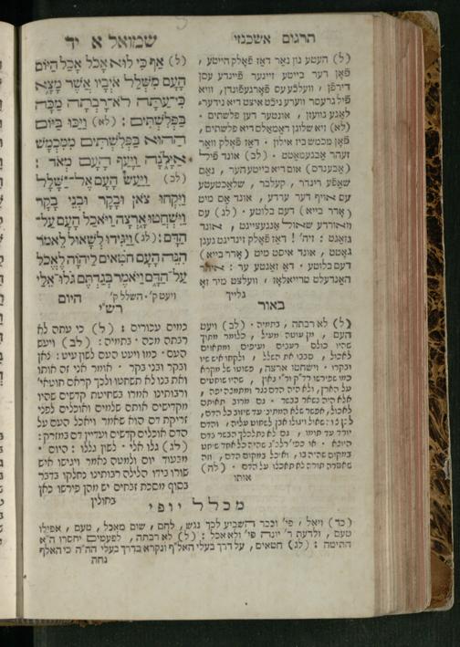 Sefer Shemuʾel 1 / ʿim targum Ashkenazi, u-veʾur, kemo she-nidpas be-Ṿin [meturgam u-mevoʾar ʿal-yede R. Meʾir Oborniḳ], ṿe-hosafti bo pe. ... Rashi z.ts.l. ... Ṿe-nilṿeh elaṿ, pe. Mikhlal yofi .. ṿe-gam Tokheḥat ḥayim mi-R.ʿA. Figo z.ts.l. ...ספר שמואל א / עם תרגום אשכנזי, ובאור, כמו שנדפס בווין [מתורגם ומבואר על ידי ר׳ מאיר אברניק], והוספתי בו פי׳ ... רש״י זצ״ל. ... ונלוה אליו, פי׳ מכלל יופי ... וגם תוכחת חיים, מר״ע פיגו זצ״ל