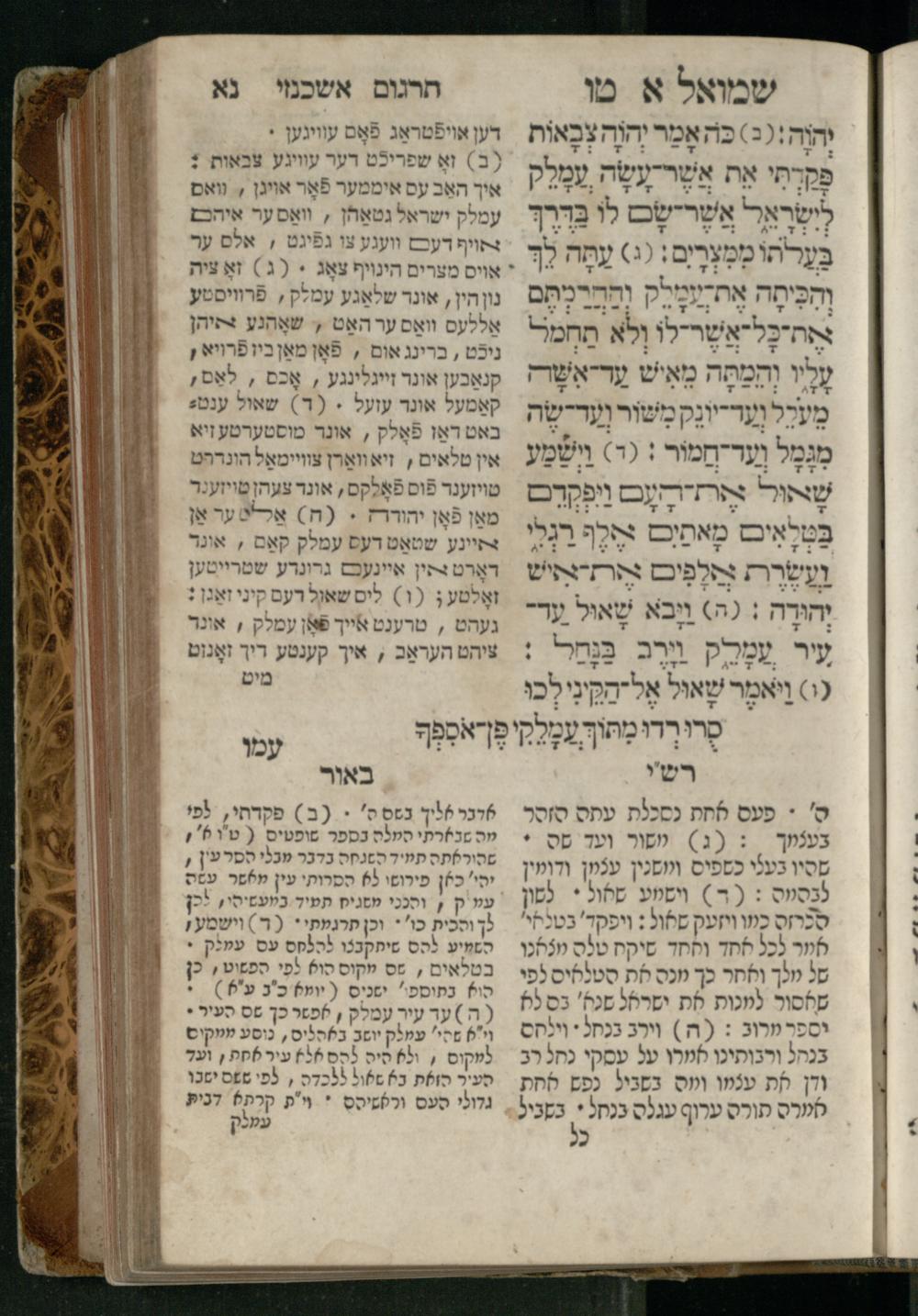 Sefer Shemuʾel 1 / ʿim targum Ashkenazi, u-veʾur, kemo she-nidpas be-Ṿin [meturgam u-mevoʾar ʿal-yede R. Meʾir Oborniḳ], ṿe-hosafti bo pe. ... Rashi z.ts.l. ... Ṿe-nilṿeh elaṿ, pe. Mikhlal yofi .. ṿe-gam Tokheḥat ḥayim mi-R.ʿA. Figo z.ts.l. ...ספר שמואל א / עם תרגום אשכנזי, ובאור, כמו שנדפס בווין [מתורגם ומבואר על ידי ר׳ מאיר אברניק], והוספתי בו פי׳ ... רש״י זצ״ל. ... ונלוה אליו, פי׳ מכלל יופי ... וגם תוכחת חיים, מר״ע פיגו זצ״ל
