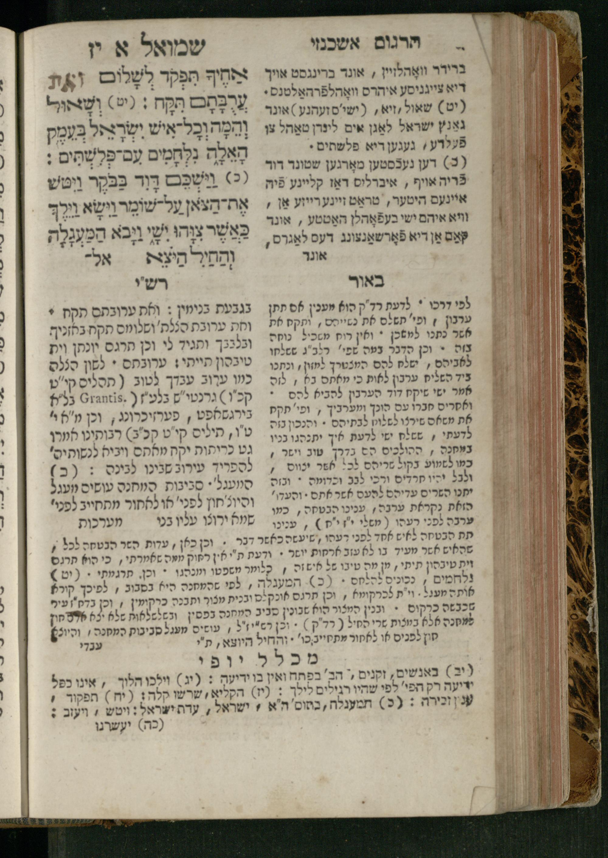 Sefer Shemuʾel 1 / ʿim targum Ashkenazi, u-veʾur, kemo she-nidpas be-Ṿin [meturgam u-mevoʾar ʿal-yede R. Meʾir Oborniḳ], ṿe-hosafti bo pe. ... Rashi z.ts.l. ... Ṿe-nilṿeh elaṿ, pe. Mikhlal yofi .. ṿe-gam Tokheḥat ḥayim mi-R.ʿA. Figo z.ts.l. ...ספר שמואל א / עם תרגום אשכנזי, ובאור, כמו שנדפס בווין [מתורגם ומבואר על ידי ר׳ מאיר אברניק], והוספתי בו פי׳ ... רש״י זצ״ל. ... ונלוה אליו, פי׳ מכלל יופי ... וגם תוכחת חיים, מר״ע פיגו זצ״ל