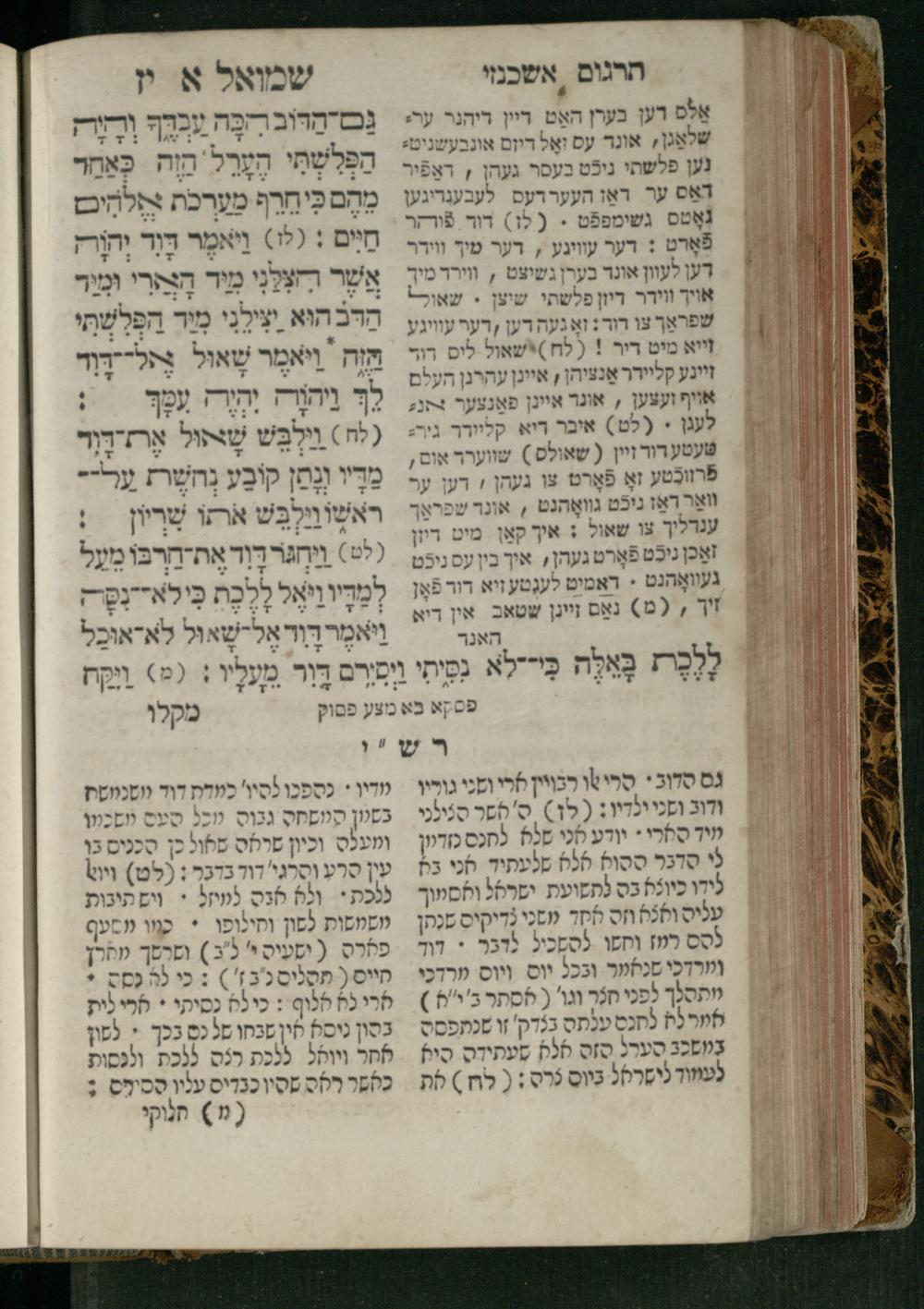 Sefer Shemuʾel 1 / ʿim targum Ashkenazi, u-veʾur, kemo she-nidpas be-Ṿin [meturgam u-mevoʾar ʿal-yede R. Meʾir Oborniḳ], ṿe-hosafti bo pe. ... Rashi z.ts.l. ... Ṿe-nilṿeh elaṿ, pe. Mikhlal yofi .. ṿe-gam Tokheḥat ḥayim mi-R.ʿA. Figo z.ts.l. ...ספר שמואל א / עם תרגום אשכנזי, ובאור, כמו שנדפס בווין [מתורגם ומבואר על ידי ר׳ מאיר אברניק], והוספתי בו פי׳ ... רש״י זצ״ל. ... ונלוה אליו, פי׳ מכלל יופי ... וגם תוכחת חיים, מר״ע פיגו זצ״ל