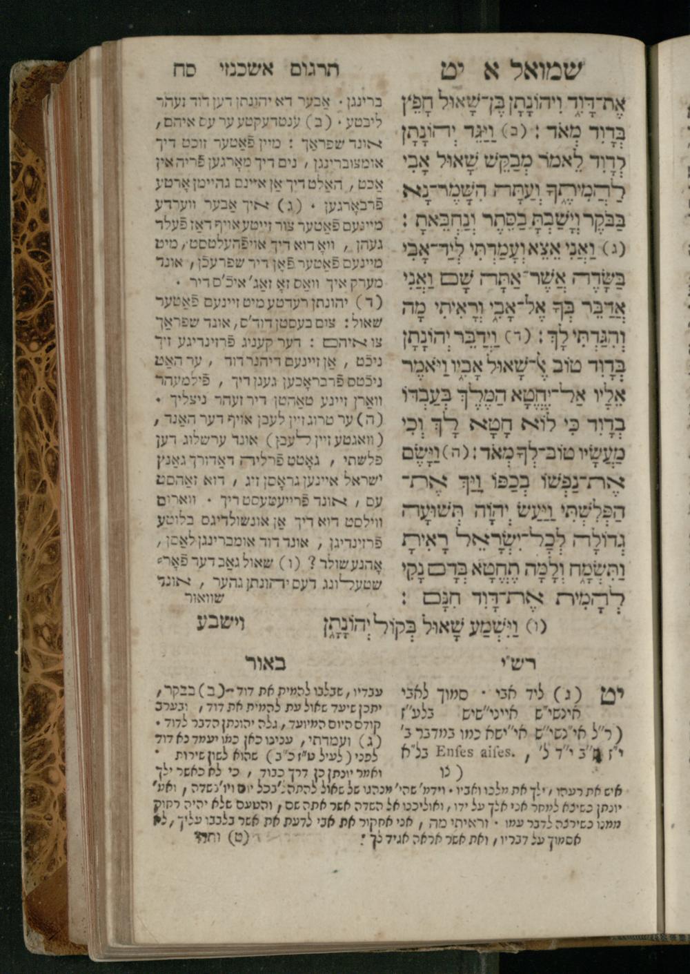 Sefer Shemuʾel 1 / ʿim targum Ashkenazi, u-veʾur, kemo she-nidpas be-Ṿin [meturgam u-mevoʾar ʿal-yede R. Meʾir Oborniḳ], ṿe-hosafti bo pe. ... Rashi z.ts.l. ... Ṿe-nilṿeh elaṿ, pe. Mikhlal yofi .. ṿe-gam Tokheḥat ḥayim mi-R.ʿA. Figo z.ts.l. ...ספר שמואל א / עם תרגום אשכנזי, ובאור, כמו שנדפס בווין [מתורגם ומבואר על ידי ר׳ מאיר אברניק], והוספתי בו פי׳ ... רש״י זצ״ל. ... ונלוה אליו, פי׳ מכלל יופי ... וגם תוכחת חיים, מר״ע פיגו זצ״ל