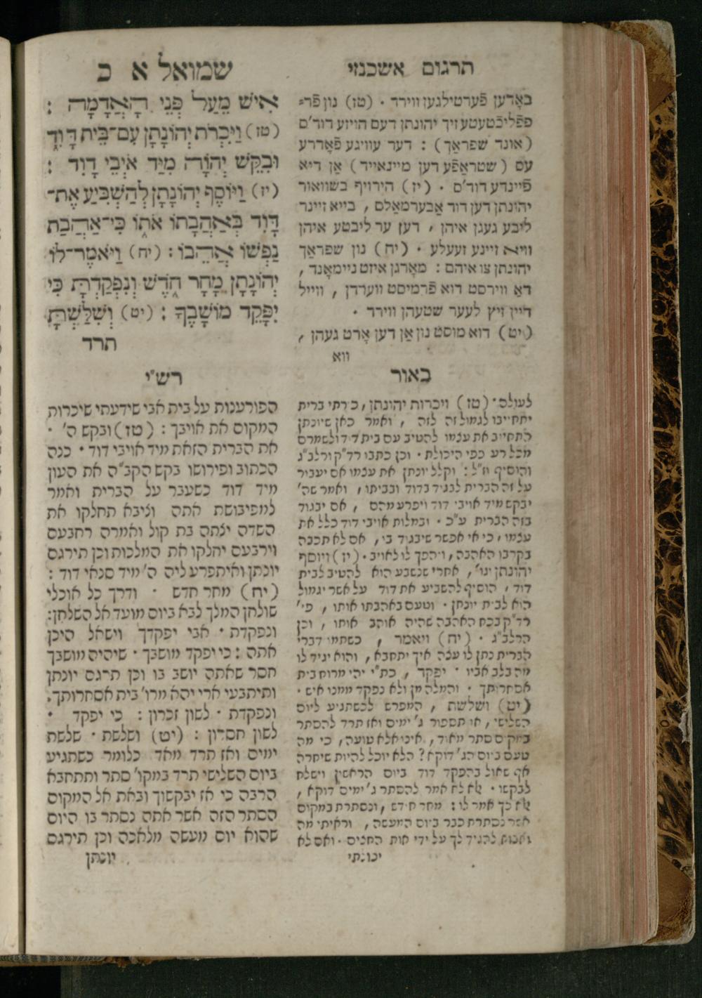 Sefer Shemuʾel 1 / ʿim targum Ashkenazi, u-veʾur, kemo she-nidpas be-Ṿin [meturgam u-mevoʾar ʿal-yede R. Meʾir Oborniḳ], ṿe-hosafti bo pe. ... Rashi z.ts.l. ... Ṿe-nilṿeh elaṿ, pe. Mikhlal yofi .. ṿe-gam Tokheḥat ḥayim mi-R.ʿA. Figo z.ts.l. ...ספר שמואל א / עם תרגום אשכנזי, ובאור, כמו שנדפס בווין [מתורגם ומבואר על ידי ר׳ מאיר אברניק], והוספתי בו פי׳ ... רש״י זצ״ל. ... ונלוה אליו, פי׳ מכלל יופי ... וגם תוכחת חיים, מר״ע פיגו זצ״ל