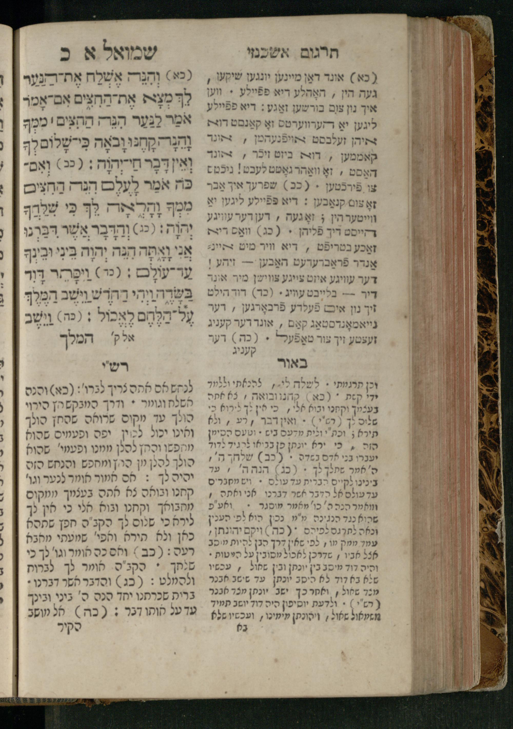Sefer Shemuʾel 1 / ʿim targum Ashkenazi, u-veʾur, kemo she-nidpas be-Ṿin [meturgam u-mevoʾar ʿal-yede R. Meʾir Oborniḳ], ṿe-hosafti bo pe. ... Rashi z.ts.l. ... Ṿe-nilṿeh elaṿ, pe. Mikhlal yofi .. ṿe-gam Tokheḥat ḥayim mi-R.ʿA. Figo z.ts.l. ...ספר שמואל א / עם תרגום אשכנזי, ובאור, כמו שנדפס בווין [מתורגם ומבואר על ידי ר׳ מאיר אברניק], והוספתי בו פי׳ ... רש״י זצ״ל. ... ונלוה אליו, פי׳ מכלל יופי ... וגם תוכחת חיים, מר״ע פיגו זצ״ל