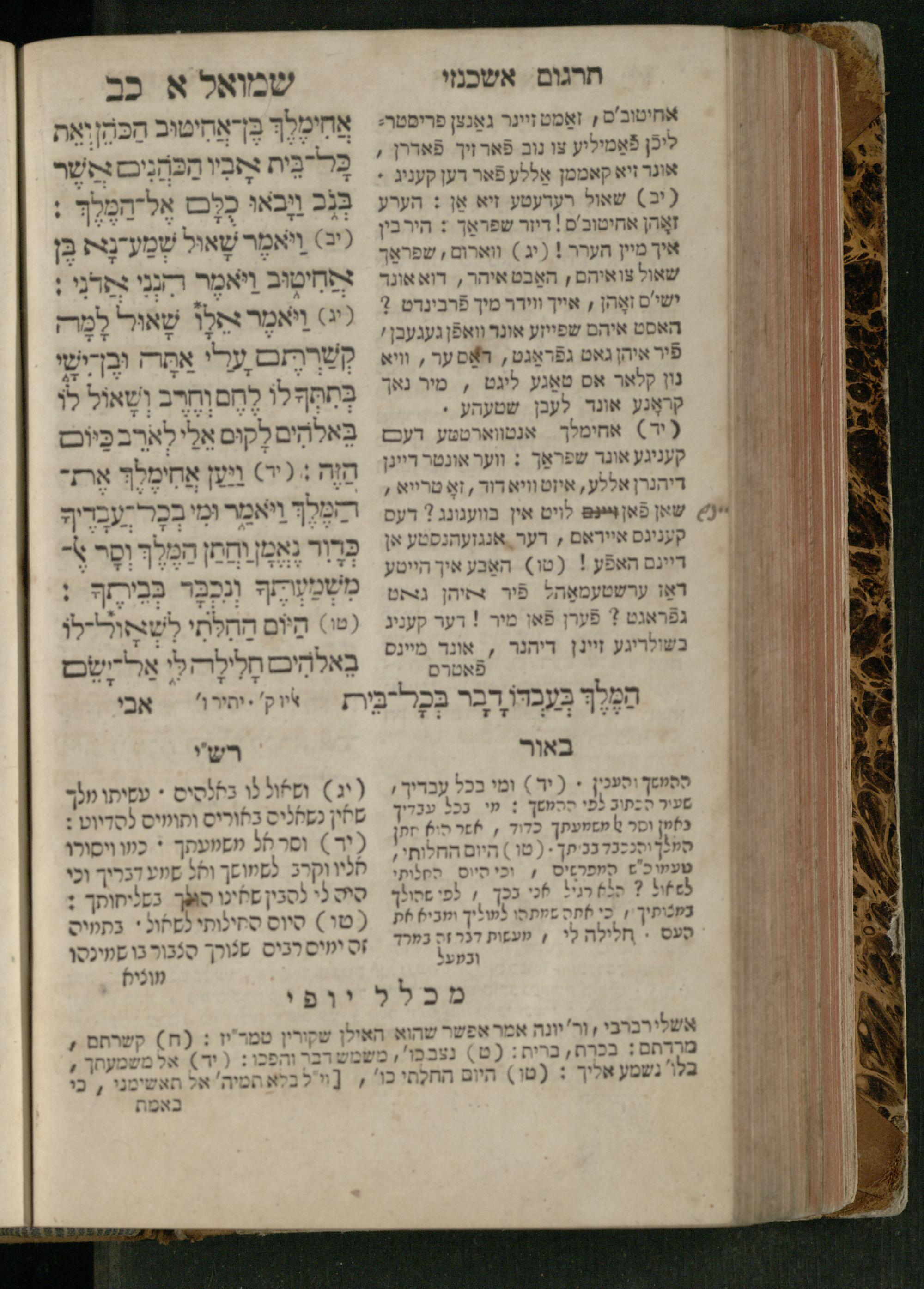 Sefer Shemuʾel 1 / ʿim targum Ashkenazi, u-veʾur, kemo she-nidpas be-Ṿin [meturgam u-mevoʾar ʿal-yede R. Meʾir Oborniḳ], ṿe-hosafti bo pe. ... Rashi z.ts.l. ... Ṿe-nilṿeh elaṿ, pe. Mikhlal yofi .. ṿe-gam Tokheḥat ḥayim mi-R.ʿA. Figo z.ts.l. ...ספר שמואל א / עם תרגום אשכנזי, ובאור, כמו שנדפס בווין [מתורגם ומבואר על ידי ר׳ מאיר אברניק], והוספתי בו פי׳ ... רש״י זצ״ל. ... ונלוה אליו, פי׳ מכלל יופי ... וגם תוכחת חיים, מר״ע פיגו זצ״ל