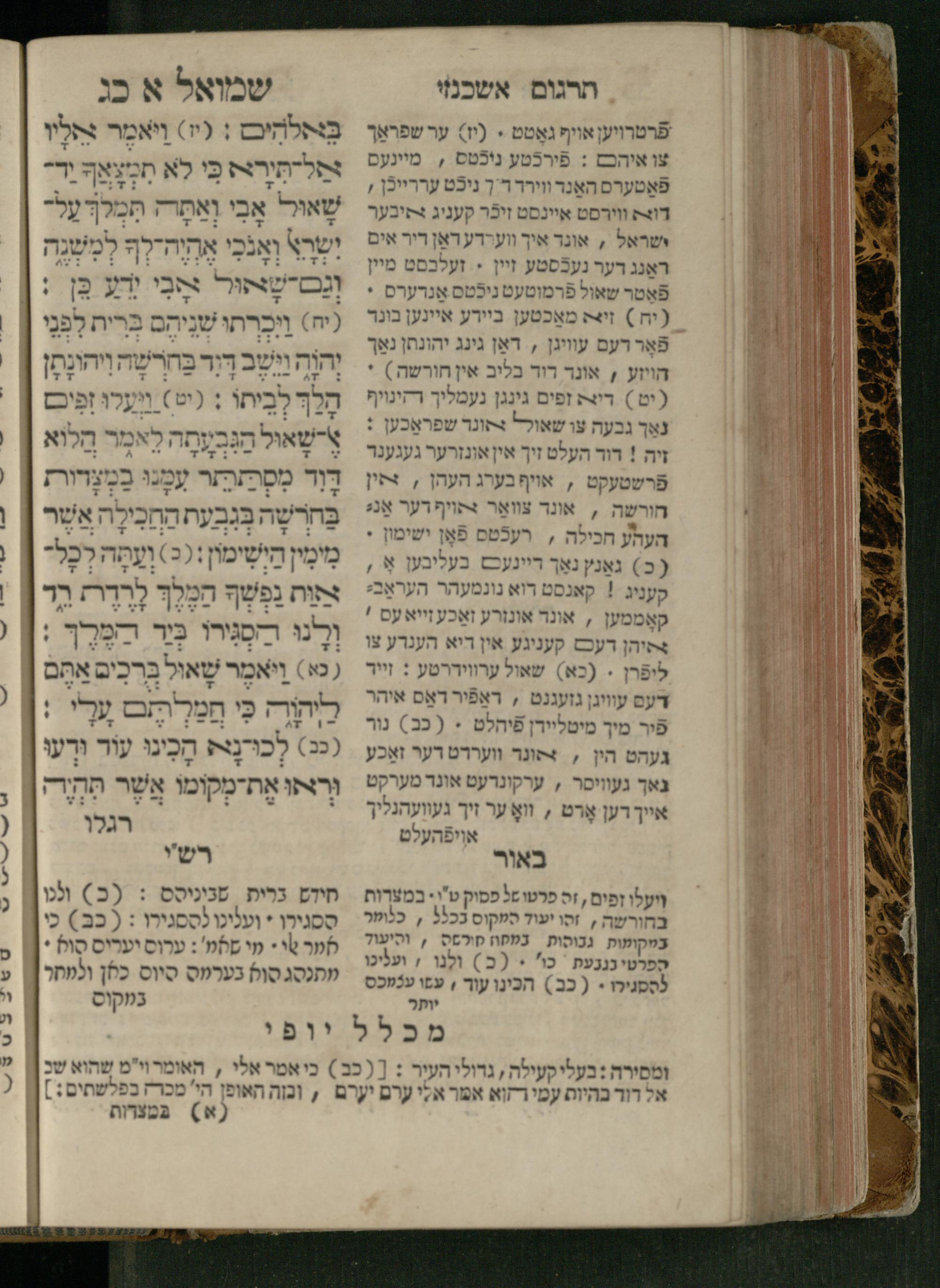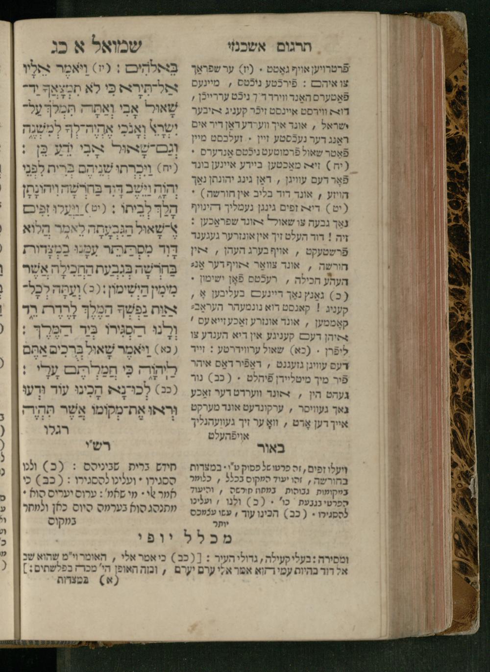 Sefer Shemuʾel 1 / ʿim targum Ashkenazi, u-veʾur, kemo she-nidpas be-Ṿin [meturgam u-mevoʾar ʿal-yede R. Meʾir Oborniḳ], ṿe-hosafti bo pe. ... Rashi z.ts.l. ... Ṿe-nilṿeh elaṿ, pe. Mikhlal yofi .. ṿe-gam Tokheḥat ḥayim mi-R.ʿA. Figo z.ts.l. ...ספר שמואל א / עם תרגום אשכנזי, ובאור, כמו שנדפס בווין [מתורגם ומבואר על ידי ר׳ מאיר אברניק], והוספתי בו פי׳ ... רש״י זצ״ל. ... ונלוה אליו, פי׳ מכלל יופי ... וגם תוכחת חיים, מר״ע פיגו זצ״ל