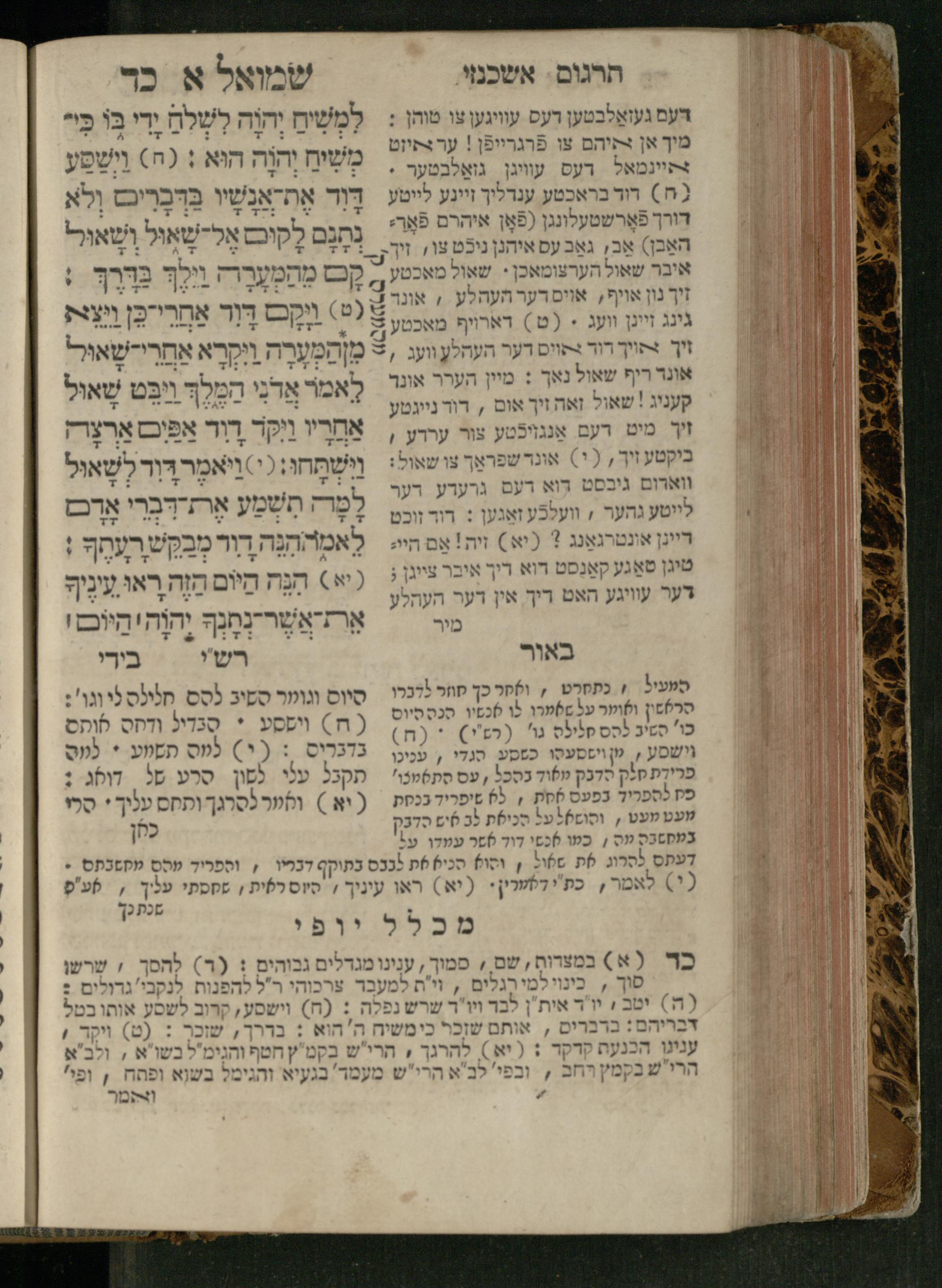 Sefer Shemuʾel 1 / ʿim targum Ashkenazi, u-veʾur, kemo she-nidpas be-Ṿin [meturgam u-mevoʾar ʿal-yede R. Meʾir Oborniḳ], ṿe-hosafti bo pe. ... Rashi z.ts.l. ... Ṿe-nilṿeh elaṿ, pe. Mikhlal yofi .. ṿe-gam Tokheḥat ḥayim mi-R.ʿA. Figo z.ts.l. ...ספר שמואל א / עם תרגום אשכנזי, ובאור, כמו שנדפס בווין [מתורגם ומבואר על ידי ר׳ מאיר אברניק], והוספתי בו פי׳ ... רש״י זצ״ל. ... ונלוה אליו, פי׳ מכלל יופי ... וגם תוכחת חיים, מר״ע פיגו זצ״ל
