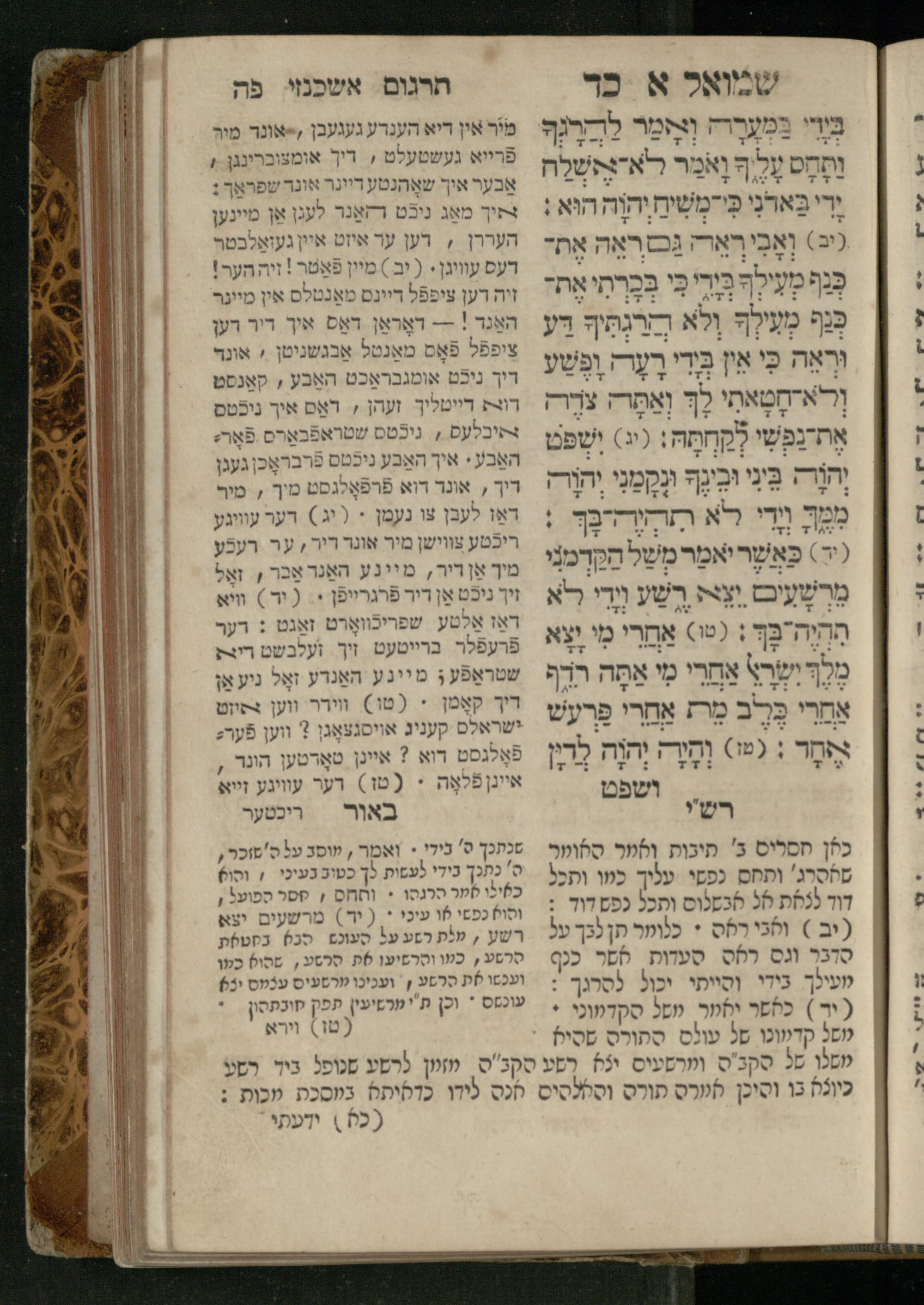 Sefer Shemuʾel 1 / ʿim targum Ashkenazi, u-veʾur, kemo she-nidpas be-Ṿin [meturgam u-mevoʾar ʿal-yede R. Meʾir Oborniḳ], ṿe-hosafti bo pe. ... Rashi z.ts.l. ... Ṿe-nilṿeh elaṿ, pe. Mikhlal yofi .. ṿe-gam Tokheḥat ḥayim mi-R.ʿA. Figo z.ts.l. ...ספר שמואל א / עם תרגום אשכנזי, ובאור, כמו שנדפס בווין [מתורגם ומבואר על ידי ר׳ מאיר אברניק], והוספתי בו פי׳ ... רש״י זצ״ל. ... ונלוה אליו, פי׳ מכלל יופי ... וגם תוכחת חיים, מר״ע פיגו זצ״ל