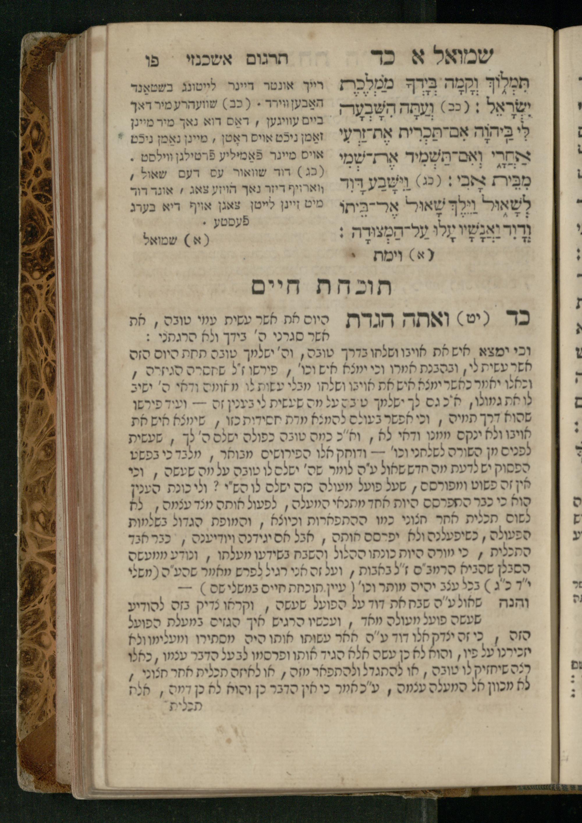 Sefer Shemuʾel 1 / ʿim targum Ashkenazi, u-veʾur, kemo she-nidpas be-Ṿin [meturgam u-mevoʾar ʿal-yede R. Meʾir Oborniḳ], ṿe-hosafti bo pe. ... Rashi z.ts.l. ... Ṿe-nilṿeh elaṿ, pe. Mikhlal yofi .. ṿe-gam Tokheḥat ḥayim mi-R.ʿA. Figo z.ts.l. ...ספר שמואל א / עם תרגום אשכנזי, ובאור, כמו שנדפס בווין [מתורגם ומבואר על ידי ר׳ מאיר אברניק], והוספתי בו פי׳ ... רש״י זצ״ל. ... ונלוה אליו, פי׳ מכלל יופי ... וגם תוכחת חיים, מר״ע פיגו זצ״ל