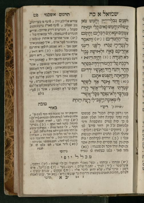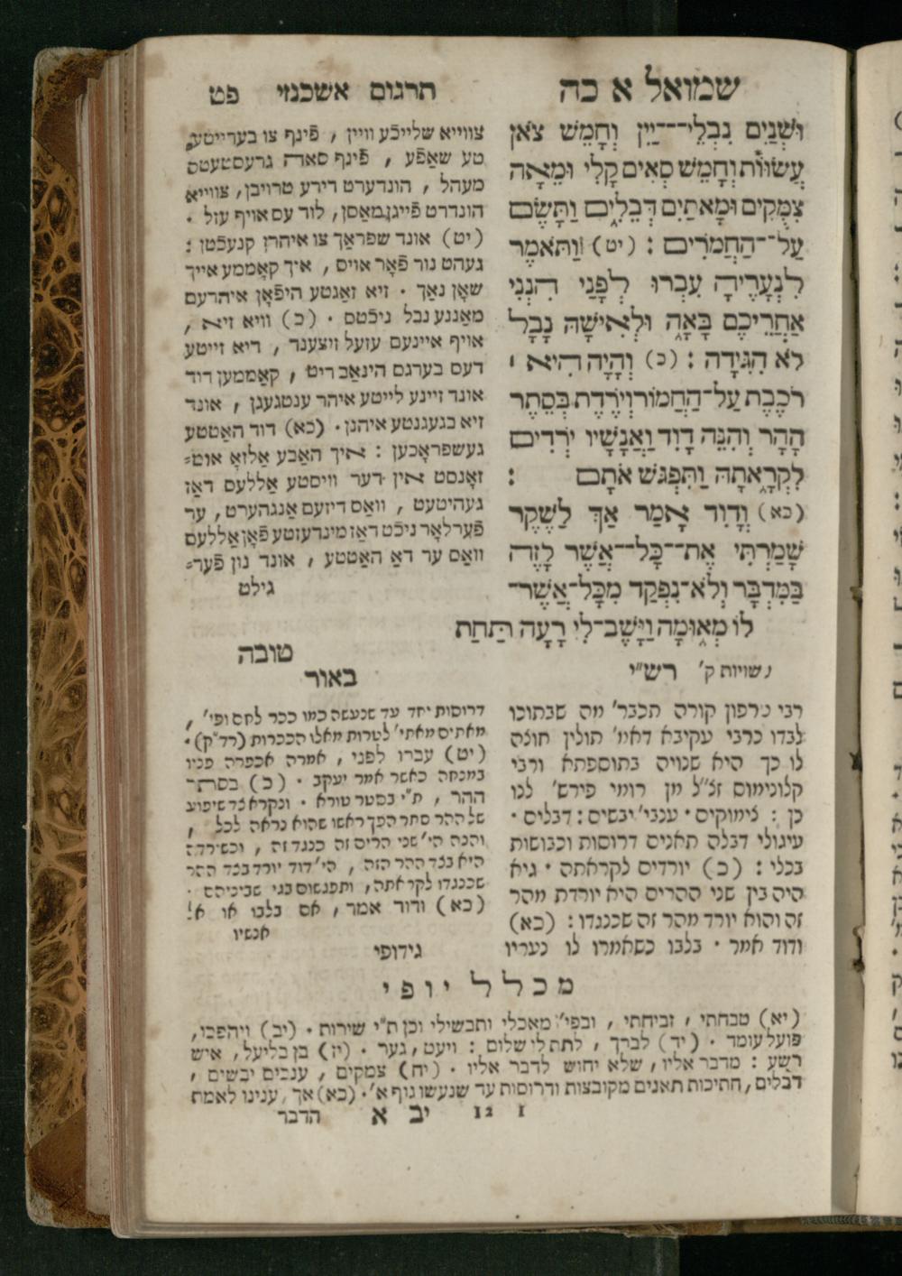 Sefer Shemuʾel 1 / ʿim targum Ashkenazi, u-veʾur, kemo she-nidpas be-Ṿin [meturgam u-mevoʾar ʿal-yede R. Meʾir Oborniḳ], ṿe-hosafti bo pe. ... Rashi z.ts.l. ... Ṿe-nilṿeh elaṿ, pe. Mikhlal yofi .. ṿe-gam Tokheḥat ḥayim mi-R.ʿA. Figo z.ts.l. ...ספר שמואל א / עם תרגום אשכנזי, ובאור, כמו שנדפס בווין [מתורגם ומבואר על ידי ר׳ מאיר אברניק], והוספתי בו פי׳ ... רש״י זצ״ל. ... ונלוה אליו, פי׳ מכלל יופי ... וגם תוכחת חיים, מר״ע פיגו זצ״ל