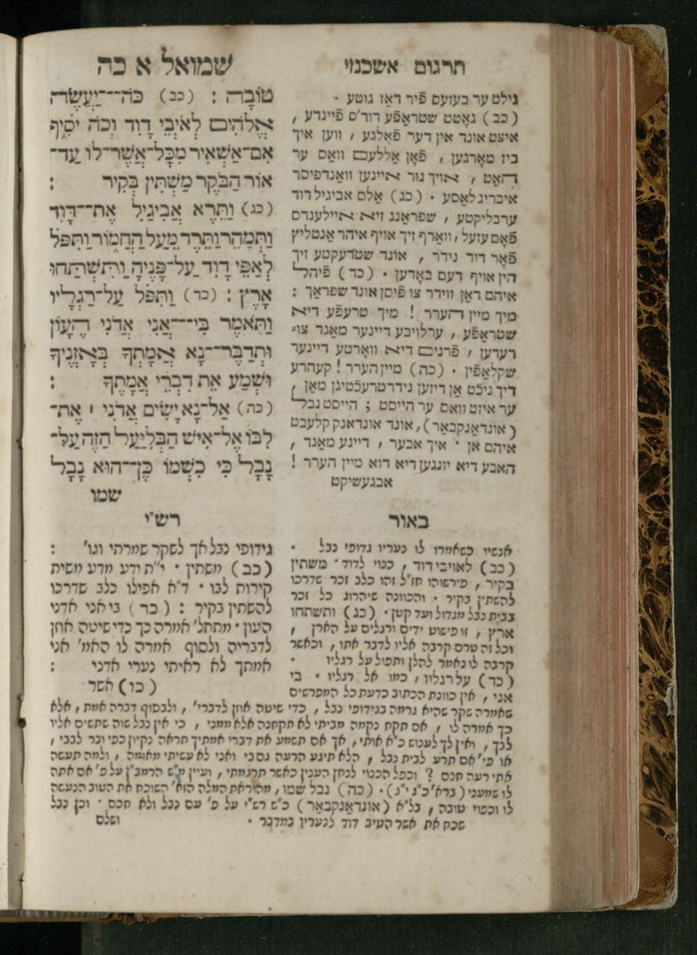 Sefer Shemuʾel 1 / ʿim targum Ashkenazi, u-veʾur, kemo she-nidpas be-Ṿin [meturgam u-mevoʾar ʿal-yede R. Meʾir Oborniḳ], ṿe-hosafti bo pe. ... Rashi z.ts.l. ... Ṿe-nilṿeh elaṿ, pe. Mikhlal yofi .. ṿe-gam Tokheḥat ḥayim mi-R.ʿA. Figo z.ts.l. ...ספר שמואל א / עם תרגום אשכנזי, ובאור, כמו שנדפס בווין [מתורגם ומבואר על ידי ר׳ מאיר אברניק], והוספתי בו פי׳ ... רש״י זצ״ל. ... ונלוה אליו, פי׳ מכלל יופי ... וגם תוכחת חיים, מר״ע פיגו זצ״ל