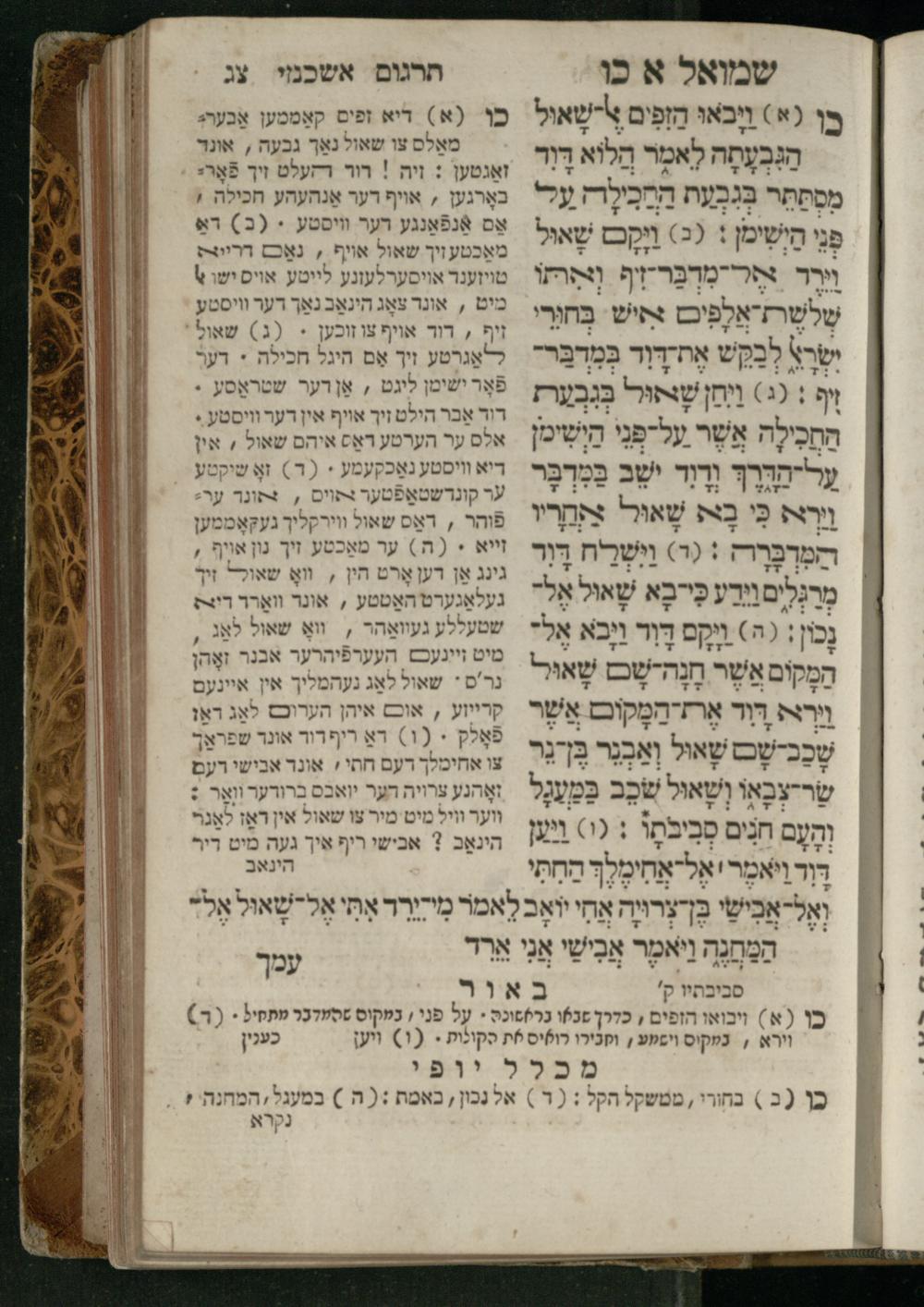 Sefer Shemuʾel 1 / ʿim targum Ashkenazi, u-veʾur, kemo she-nidpas be-Ṿin [meturgam u-mevoʾar ʿal-yede R. Meʾir Oborniḳ], ṿe-hosafti bo pe. ... Rashi z.ts.l. ... Ṿe-nilṿeh elaṿ, pe. Mikhlal yofi .. ṿe-gam Tokheḥat ḥayim mi-R.ʿA. Figo z.ts.l. ...ספר שמואל א / עם תרגום אשכנזי, ובאור, כמו שנדפס בווין [מתורגם ומבואר על ידי ר׳ מאיר אברניק], והוספתי בו פי׳ ... רש״י זצ״ל. ... ונלוה אליו, פי׳ מכלל יופי ... וגם תוכחת חיים, מר״ע פיגו זצ״ל