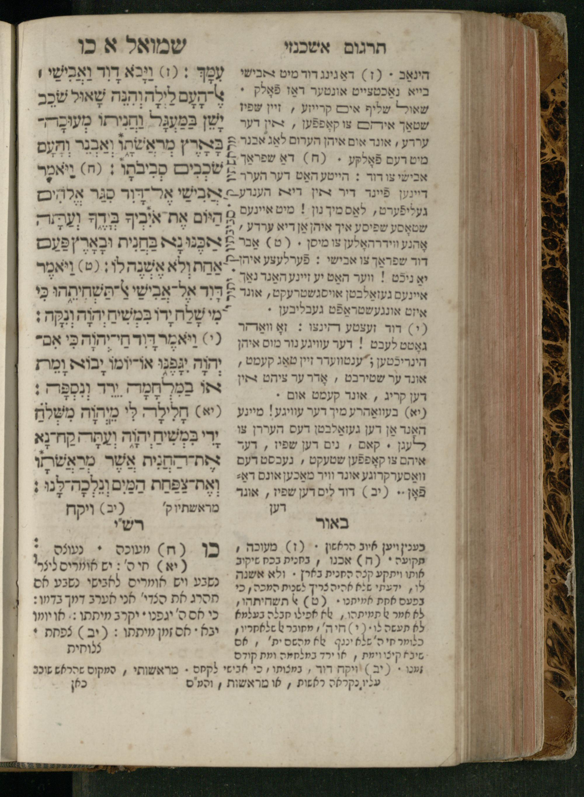 Sefer Shemuʾel 1 / ʿim targum Ashkenazi, u-veʾur, kemo she-nidpas be-Ṿin [meturgam u-mevoʾar ʿal-yede R. Meʾir Oborniḳ], ṿe-hosafti bo pe. ... Rashi z.ts.l. ... Ṿe-nilṿeh elaṿ, pe. Mikhlal yofi .. ṿe-gam Tokheḥat ḥayim mi-R.ʿA. Figo z.ts.l. ...ספר שמואל א / עם תרגום אשכנזי, ובאור, כמו שנדפס בווין [מתורגם ומבואר על ידי ר׳ מאיר אברניק], והוספתי בו פי׳ ... רש״י זצ״ל. ... ונלוה אליו, פי׳ מכלל יופי ... וגם תוכחת חיים, מר״ע פיגו זצ״ל