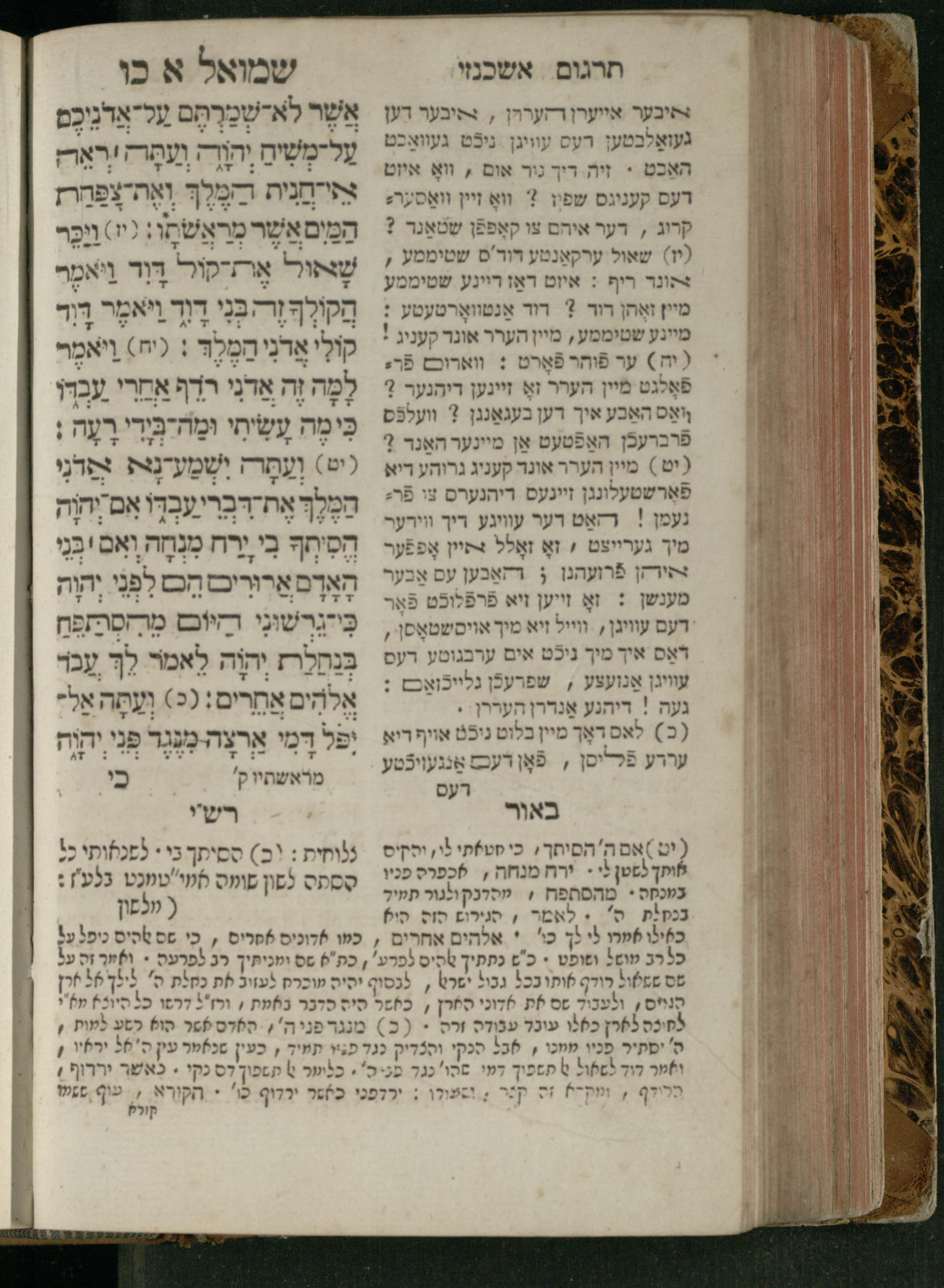 Sefer Shemuʾel 1 / ʿim targum Ashkenazi, u-veʾur, kemo she-nidpas be-Ṿin [meturgam u-mevoʾar ʿal-yede R. Meʾir Oborniḳ], ṿe-hosafti bo pe. ... Rashi z.ts.l. ... Ṿe-nilṿeh elaṿ, pe. Mikhlal yofi .. ṿe-gam Tokheḥat ḥayim mi-R.ʿA. Figo z.ts.l. ...ספר שמואל א / עם תרגום אשכנזי, ובאור, כמו שנדפס בווין [מתורגם ומבואר על ידי ר׳ מאיר אברניק], והוספתי בו פי׳ ... רש״י זצ״ל. ... ונלוה אליו, פי׳ מכלל יופי ... וגם תוכחת חיים, מר״ע פיגו זצ״ל