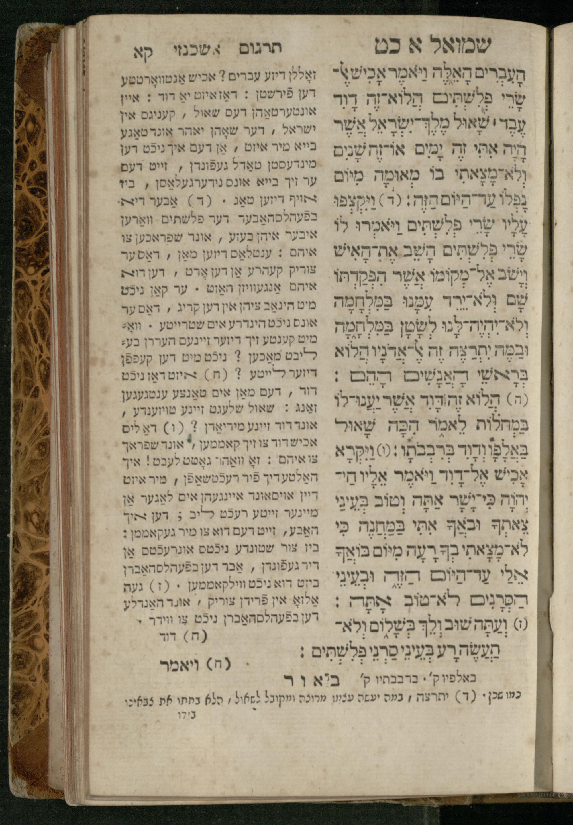 Sefer Shemuʾel 1 / ʿim targum Ashkenazi, u-veʾur, kemo she-nidpas be-Ṿin [meturgam u-mevoʾar ʿal-yede R. Meʾir Oborniḳ], ṿe-hosafti bo pe. ... Rashi z.ts.l. ... Ṿe-nilṿeh elaṿ, pe. Mikhlal yofi .. ṿe-gam Tokheḥat ḥayim mi-R.ʿA. Figo z.ts.l. ...ספר שמואל א / עם תרגום אשכנזי, ובאור, כמו שנדפס בווין [מתורגם ומבואר על ידי ר׳ מאיר אברניק], והוספתי בו פי׳ ... רש״י זצ״ל. ... ונלוה אליו, פי׳ מכלל יופי ... וגם תוכחת חיים, מר״ע פיגו זצ״ל