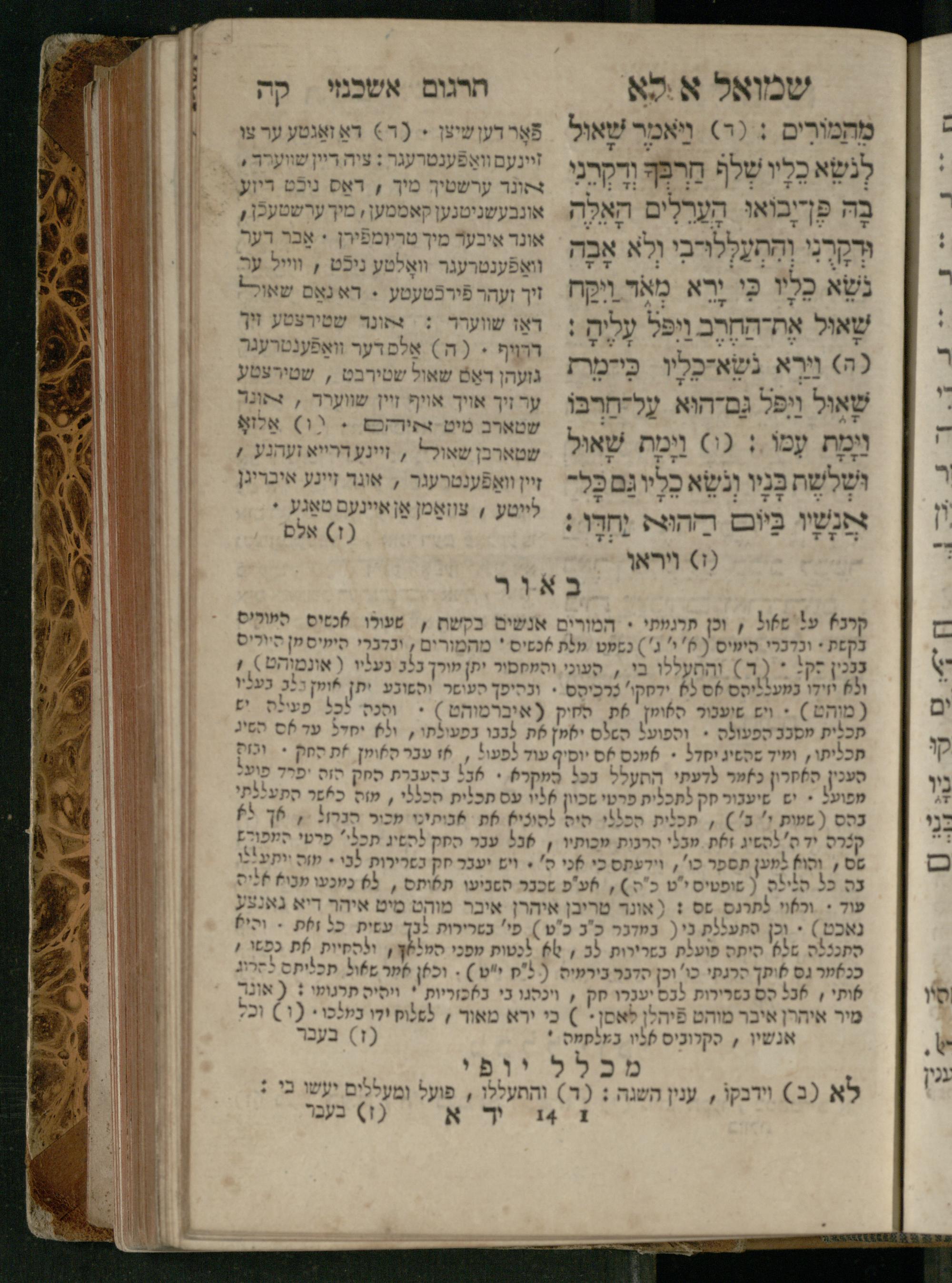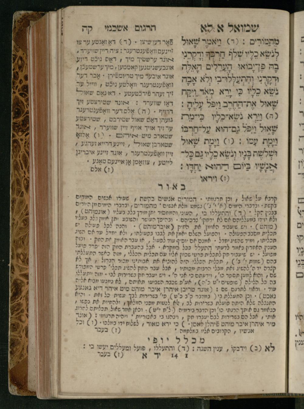 Sefer Shemuʾel 1 / ʿim targum Ashkenazi, u-veʾur, kemo she-nidpas be-Ṿin [meturgam u-mevoʾar ʿal-yede R. Meʾir Oborniḳ], ṿe-hosafti bo pe. ... Rashi z.ts.l. ... Ṿe-nilṿeh elaṿ, pe. Mikhlal yofi .. ṿe-gam Tokheḥat ḥayim mi-R.ʿA. Figo z.ts.l. ...ספר שמואל א / עם תרגום אשכנזי, ובאור, כמו שנדפס בווין [מתורגם ומבואר על ידי ר׳ מאיר אברניק], והוספתי בו פי׳ ... רש״י זצ״ל. ... ונלוה אליו, פי׳ מכלל יופי ... וגם תוכחת חיים, מר״ע פיגו זצ״ל