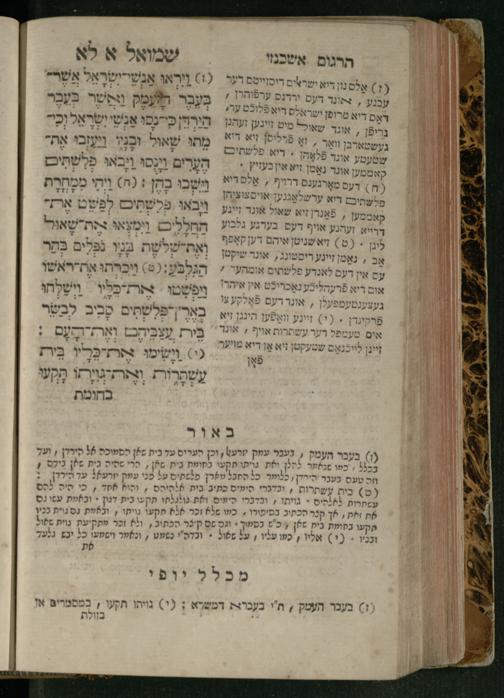 Sefer Shemuʾel 1 / ʿim targum Ashkenazi, u-veʾur, kemo she-nidpas be-Ṿin [meturgam u-mevoʾar ʿal-yede R. Meʾir Oborniḳ], ṿe-hosafti bo pe. ... Rashi z.ts.l. ... Ṿe-nilṿeh elaṿ, pe. Mikhlal yofi .. ṿe-gam Tokheḥat ḥayim mi-R.ʿA. Figo z.ts.l. ...ספר שמואל א / עם תרגום אשכנזי, ובאור, כמו שנדפס בווין [מתורגם ומבואר על ידי ר׳ מאיר אברניק], והוספתי בו פי׳ ... רש״י זצ״ל. ... ונלוה אליו, פי׳ מכלל יופי ... וגם תוכחת חיים, מר״ע פיגו זצ״ל