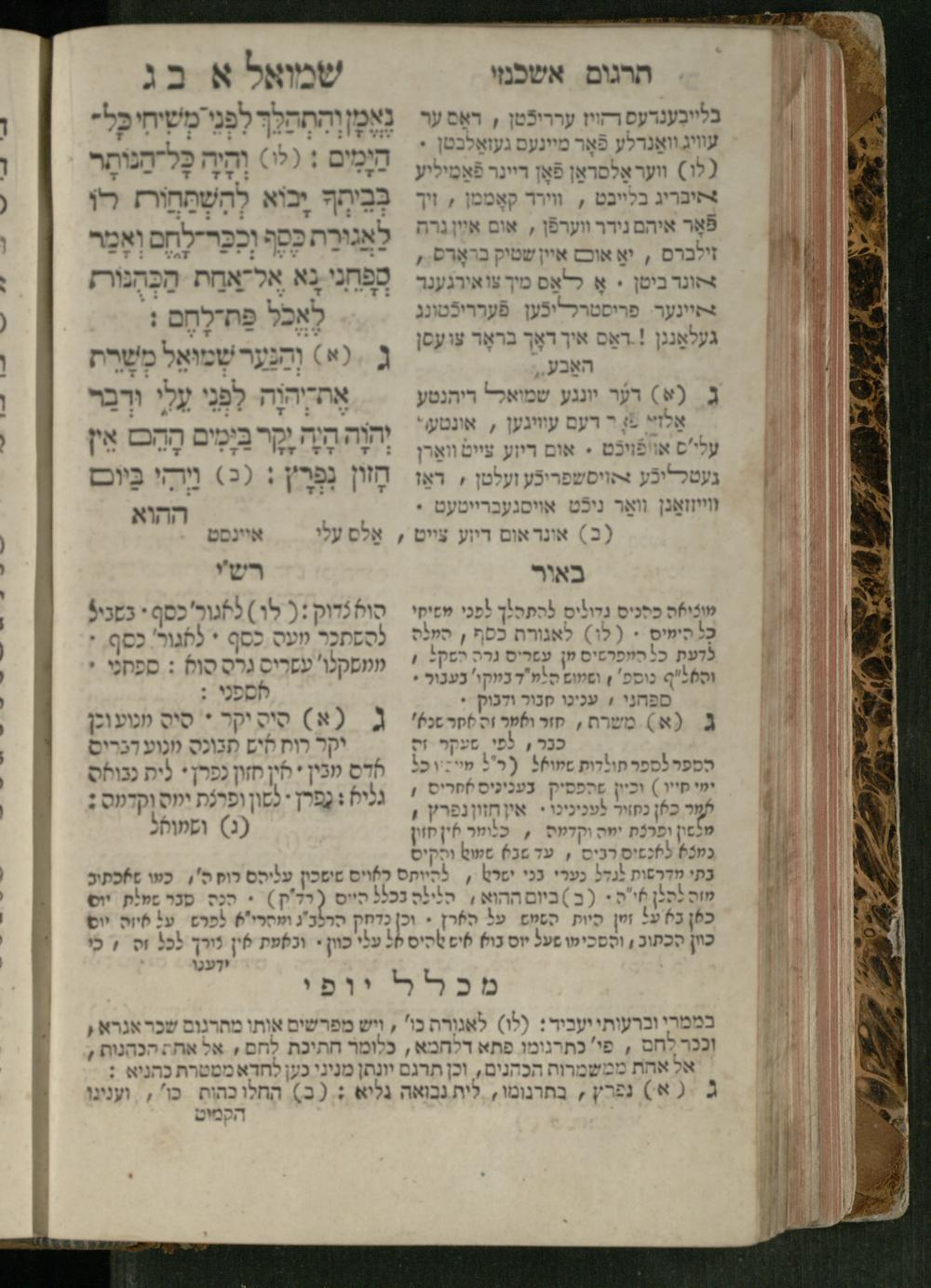 Sefer Shemuʾel 1 / ʿim targum Ashkenazi, u-veʾur, kemo she-nidpas be-Ṿin [meturgam u-mevoʾar ʿal-yede R. Meʾir Oborniḳ], ṿe-hosafti bo pe. ... Rashi z.ts.l. ... Ṿe-nilṿeh elaṿ, pe. Mikhlal yofi .. ṿe-gam Tokheḥat ḥayim mi-R.ʿA. Figo z.ts.l. ...ספר שמואל א / עם תרגום אשכנזי, ובאור, כמו שנדפס בווין [מתורגם ומבואר על ידי ר׳ מאיר אברניק], והוספתי בו פי׳ ... רש״י זצ״ל. ... ונלוה אליו, פי׳ מכלל יופי ... וגם תוכחת חיים, מר״ע פיגו זצ״ל