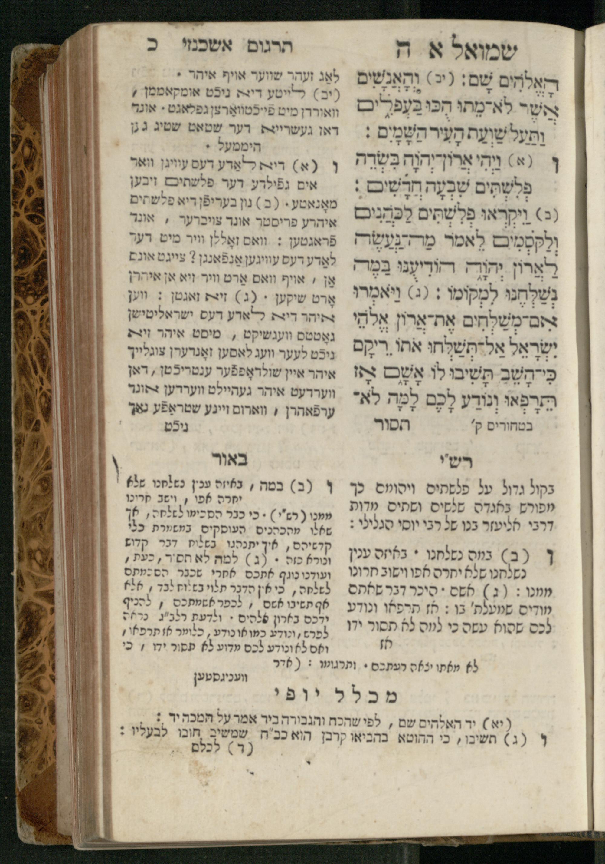 Sefer Shemuʾel 1 / ʿim targum Ashkenazi, u-veʾur, kemo she-nidpas be-Ṿin [meturgam u-mevoʾar ʿal-yede R. Meʾir Oborniḳ], ṿe-hosafti bo pe. ... Rashi z.ts.l. ... Ṿe-nilṿeh elaṿ, pe. Mikhlal yofi .. ṿe-gam Tokheḥat ḥayim mi-R.ʿA. Figo z.ts.l. ...ספר שמואל א / עם תרגום אשכנזי, ובאור, כמו שנדפס בווין [מתורגם ומבואר על ידי ר׳ מאיר אברניק], והוספתי בו פי׳ ... רש״י זצ״ל. ... ונלוה אליו, פי׳ מכלל יופי ... וגם תוכחת חיים, מר״ע פיגו זצ״ל