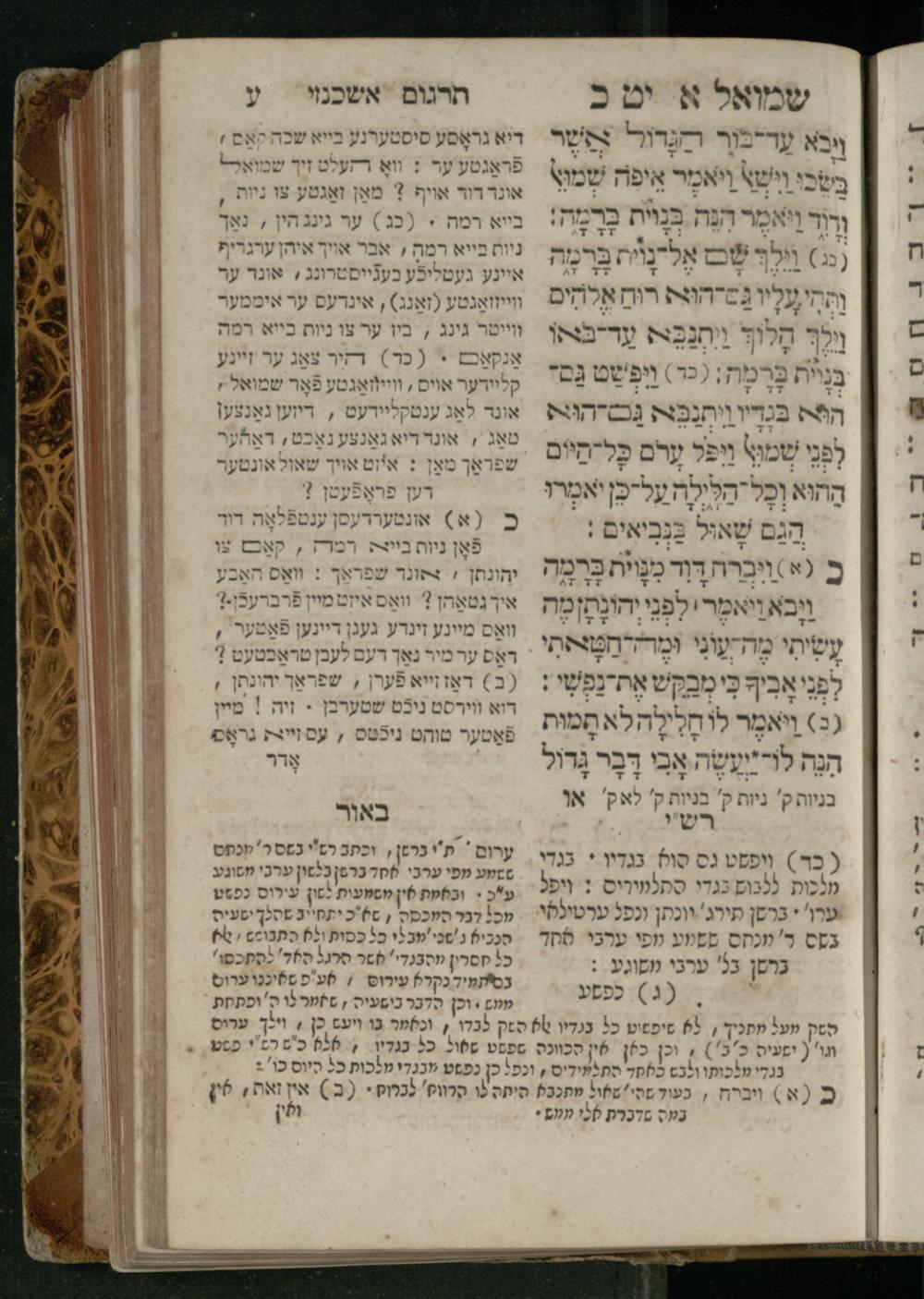 Sefer Shemuʾel 1 / ʿim targum Ashkenazi, u-veʾur, kemo she-nidpas be-Ṿin [meturgam u-mevoʾar ʿal-yede R. Meʾir Oborniḳ], ṿe-hosafti bo pe. ... Rashi z.ts.l. ... Ṿe-nilṿeh elaṿ, pe. Mikhlal yofi .. ṿe-gam Tokheḥat ḥayim mi-R.ʿA. Figo z.ts.l. ...ספר שמואל א / עם תרגום אשכנזי, ובאור, כמו שנדפס בווין [מתורגם ומבואר על ידי ר׳ מאיר אברניק], והוספתי בו פי׳ ... רש״י זצ״ל. ... ונלוה אליו, פי׳ מכלל יופי ... וגם תוכחת חיים, מר״ע פיגו זצ״ל