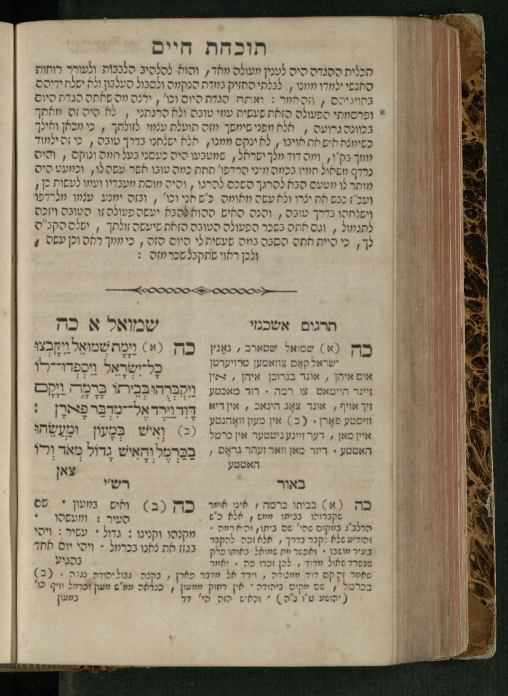 Sefer Shemuʾel 1 / ʿim targum Ashkenazi, u-veʾur, kemo she-nidpas be-Ṿin [meturgam u-mevoʾar ʿal-yede R. Meʾir Oborniḳ], ṿe-hosafti bo pe. ... Rashi z.ts.l. ... Ṿe-nilṿeh elaṿ, pe. Mikhlal yofi .. ṿe-gam Tokheḥat ḥayim mi-R.ʿA. Figo z.ts.l. ...ספר שמואל א / עם תרגום אשכנזי, ובאור, כמו שנדפס בווין [מתורגם ומבואר על ידי ר׳ מאיר אברניק], והוספתי בו פי׳ ... רש״י זצ״ל. ... ונלוה אליו, פי׳ מכלל יופי ... וגם תוכחת חיים, מר״ע פיגו זצ״ל
