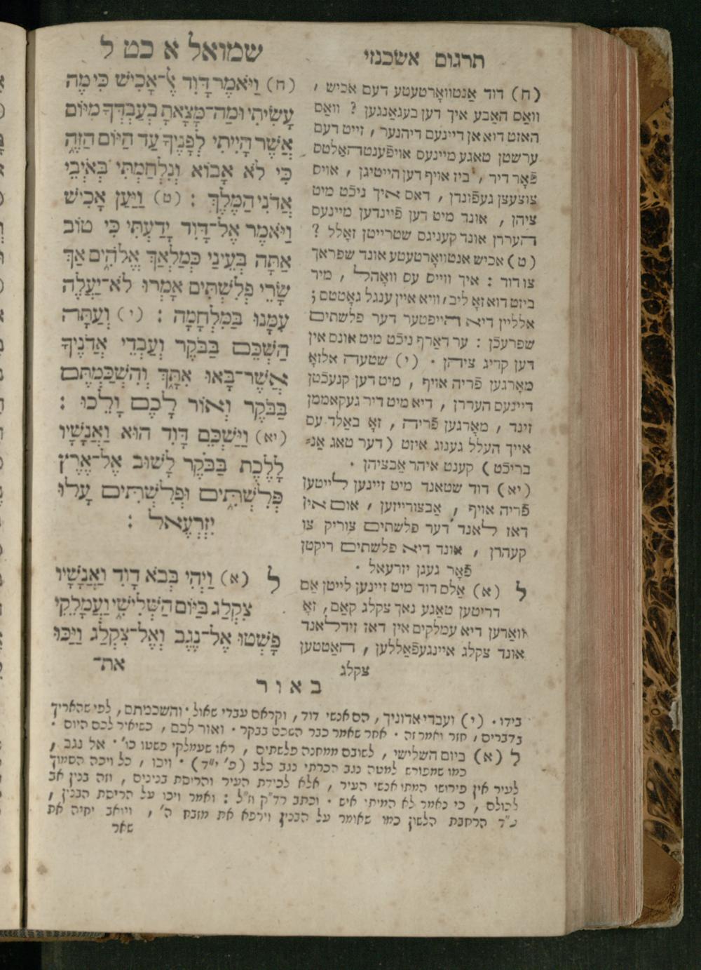 Sefer Shemuʾel 1 / ʿim targum Ashkenazi, u-veʾur, kemo she-nidpas be-Ṿin [meturgam u-mevoʾar ʿal-yede R. Meʾir Oborniḳ], ṿe-hosafti bo pe. ... Rashi z.ts.l. ... Ṿe-nilṿeh elaṿ, pe. Mikhlal yofi .. ṿe-gam Tokheḥat ḥayim mi-R.ʿA. Figo z.ts.l. ...ספר שמואל א / עם תרגום אשכנזי, ובאור, כמו שנדפס בווין [מתורגם ומבואר על ידי ר׳ מאיר אברניק], והוספתי בו פי׳ ... רש״י זצ״ל. ... ונלוה אליו, פי׳ מכלל יופי ... וגם תוכחת חיים, מר״ע פיגו זצ״ל