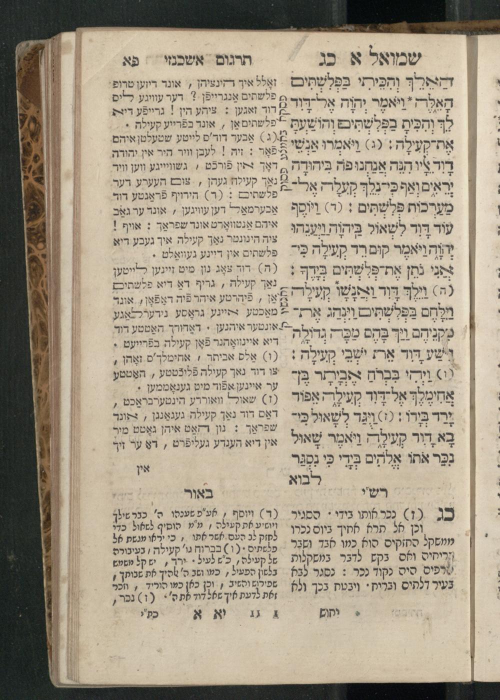 Sefer Shemuʾel 1 / ʿim targum Ashkenazi, u-veʾur, kemo she-nidpas be-Ṿin [meturgam u-mevoʾar ʿal-yede R. Meʾir Oborniḳ], ṿe-hosafti bo pe. ... Rashi z.ts.l. ... Ṿe-nilṿeh elaṿ, pe. Mikhlal yofi .. ṿe-gam Tokheḥat ḥayim mi-R.ʿA. Figo z.ts.l. ...ספר שמואל א / עם תרגום אשכנזי, ובאור, כמו שנדפס בווין [מתורגם ומבואר על ידי ר׳ מאיר אברניק], והוספתי בו פי׳ ... רש״י זצ״ל. ... ונלוה אליו, פי׳ מכלל יופי ... וגם תוכחת חיים, מר״ע פיגו זצ״ל