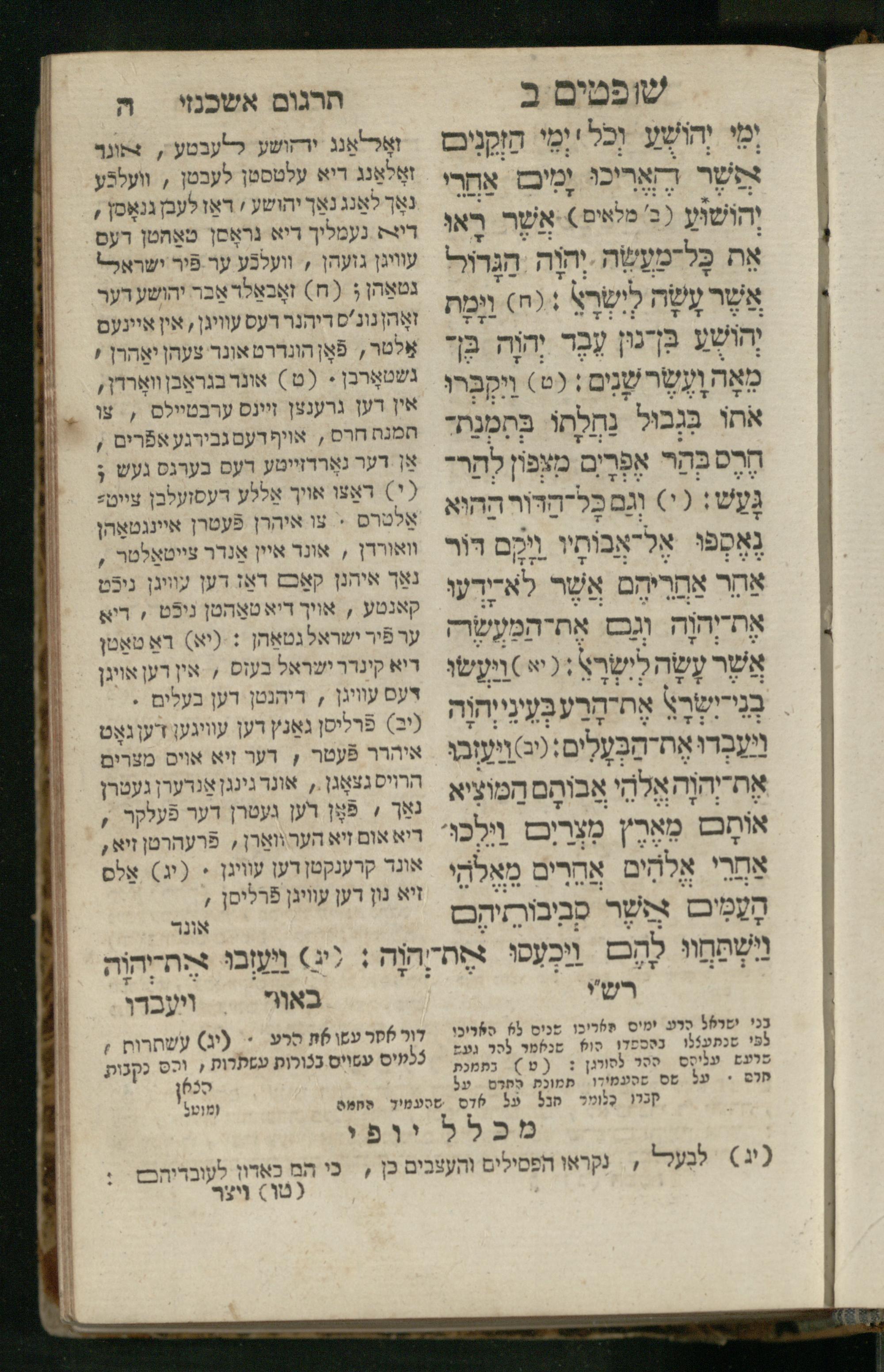 Sefer Shofṭim / ʿim targum Ashkenazi, u-veʾur, meturgam u-mevoʾar me-et R. Meʾir Oborniḳ, ṿe-hosafti bo pe. ... Rashi z.ts.l., ṿe-gam be-khol maḳom she-neʿemar be-perusho milat b.l.ʿa.z., ba be-tsedo ... perusho b.l.A. Ṿe-nilṿeh elaṿ pe. Mikhlal yofi ... ...ספר שופטים / עם תרגום אשכנזי, ובאור, מתורגם ומבואר מאת ר׳ מאיר אברניק, והוספתי בו פי׳... רש״י זצ״ל, וגם בכל מקום שנאמר בפירושו מלת בלע״ז, בא בצידו ... פירושו בל״א. ונלוה אליו פי׳ מכלל יופי ... ...