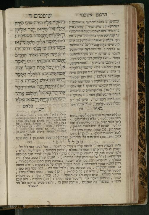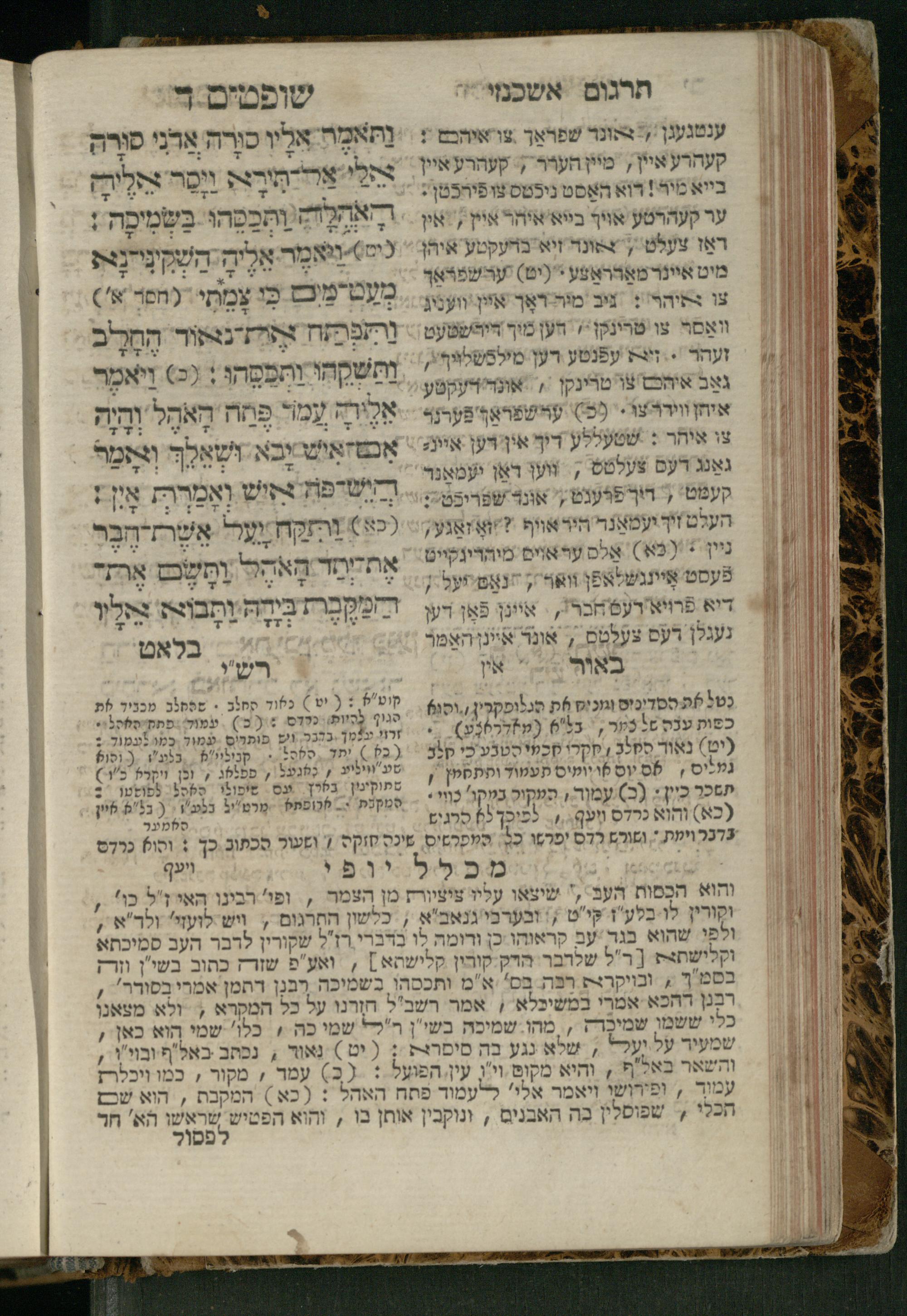 Sefer Shofṭim / ʿim targum Ashkenazi, u-veʾur, meturgam u-mevoʾar me-et R. Meʾir Oborniḳ, ṿe-hosafti bo pe. ... Rashi z.ts.l., ṿe-gam be-khol maḳom she-neʿemar be-perusho milat b.l.ʿa.z., ba be-tsedo ... perusho b.l.A. Ṿe-nilṿeh elaṿ pe. Mikhlal yofi ... ...ספר שופטים / עם תרגום אשכנזי, ובאור, מתורגם ומבואר מאת ר׳ מאיר אברניק, והוספתי בו פי׳... רש״י זצ״ל, וגם בכל מקום שנאמר בפירושו מלת בלע״ז, בא בצידו ... פירושו בל״א. ונלוה אליו פי׳ מכלל יופי ... ...