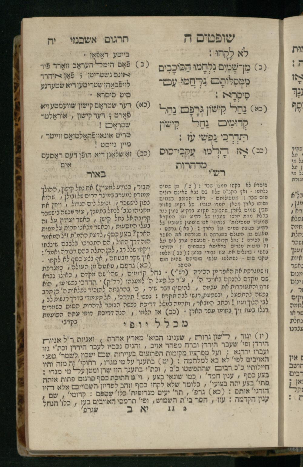 Sefer Shofṭim / ʿim targum Ashkenazi, u-veʾur, meturgam u-mevoʾar me-et R. Meʾir Oborniḳ, ṿe-hosafti bo pe. ... Rashi z.ts.l., ṿe-gam be-khol maḳom she-neʿemar be-perusho milat b.l.ʿa.z., ba be-tsedo ... perusho b.l.A. Ṿe-nilṿeh elaṿ pe. Mikhlal yofi ... ...ספר שופטים / עם תרגום אשכנזי, ובאור, מתורגם ומבואר מאת ר׳ מאיר אברניק, והוספתי בו פי׳... רש״י זצ״ל, וגם בכל מקום שנאמר בפירושו מלת בלע״ז, בא בצידו ... פירושו בל״א. ונלוה אליו פי׳ מכלל יופי ... ...