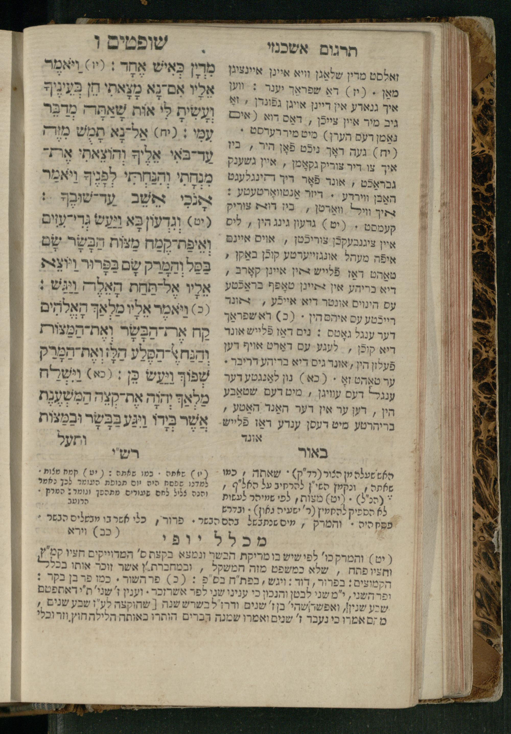Sefer Shofṭim / ʿim targum Ashkenazi, u-veʾur, meturgam u-mevoʾar me-et R. Meʾir Oborniḳ, ṿe-hosafti bo pe. ... Rashi z.ts.l., ṿe-gam be-khol maḳom she-neʿemar be-perusho milat b.l.ʿa.z., ba be-tsedo ... perusho b.l.A. Ṿe-nilṿeh elaṿ pe. Mikhlal yofi ... ...ספר שופטים / עם תרגום אשכנזי, ובאור, מתורגם ומבואר מאת ר׳ מאיר אברניק, והוספתי בו פי׳... רש״י זצ״ל, וגם בכל מקום שנאמר בפירושו מלת בלע״ז, בא בצידו ... פירושו בל״א. ונלוה אליו פי׳ מכלל יופי ... ...