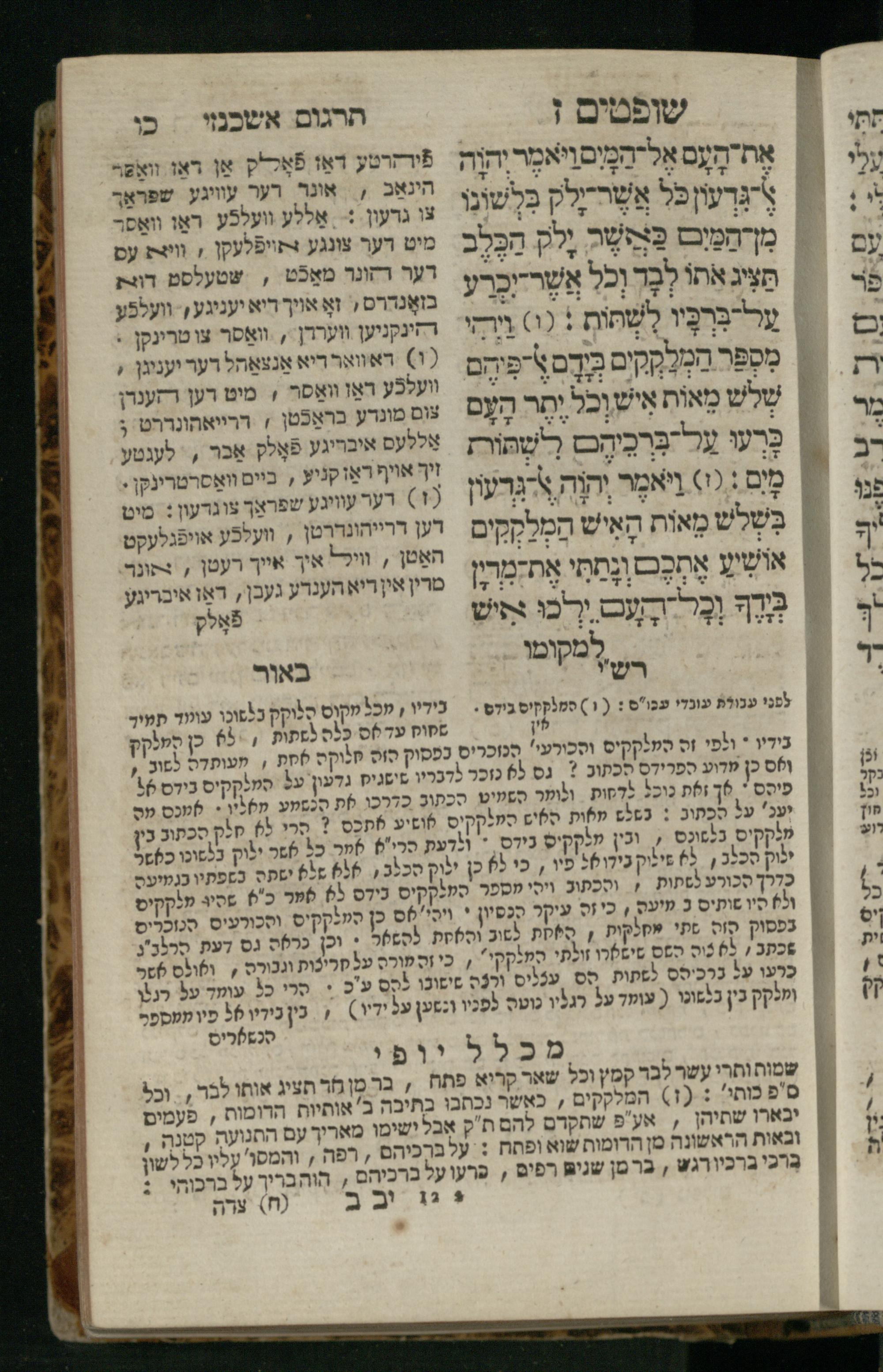 Sefer Shofṭim / ʿim targum Ashkenazi, u-veʾur, meturgam u-mevoʾar me-et R. Meʾir Oborniḳ, ṿe-hosafti bo pe. ... Rashi z.ts.l., ṿe-gam be-khol maḳom she-neʿemar be-perusho milat b.l.ʿa.z., ba be-tsedo ... perusho b.l.A. Ṿe-nilṿeh elaṿ pe. Mikhlal yofi ... ...ספר שופטים / עם תרגום אשכנזי, ובאור, מתורגם ומבואר מאת ר׳ מאיר אברניק, והוספתי בו פי׳... רש״י זצ״ל, וגם בכל מקום שנאמר בפירושו מלת בלע״ז, בא בצידו ... פירושו בל״א. ונלוה אליו פי׳ מכלל יופי ... ...