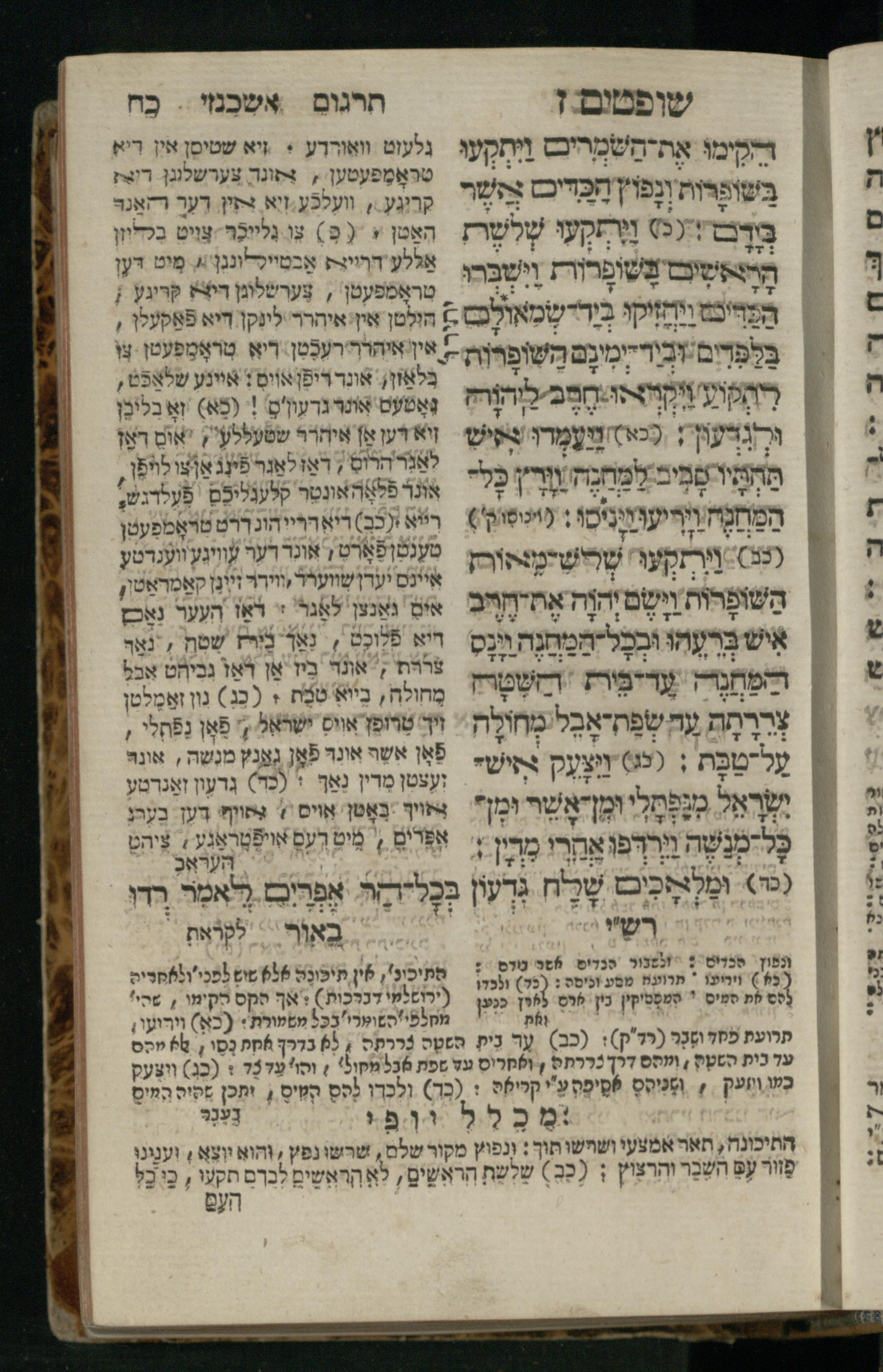 Sefer Shofṭim / ʿim targum Ashkenazi, u-veʾur, meturgam u-mevoʾar me-et R. Meʾir Oborniḳ, ṿe-hosafti bo pe. ... Rashi z.ts.l., ṿe-gam be-khol maḳom she-neʿemar be-perusho milat b.l.ʿa.z., ba be-tsedo ... perusho b.l.A. Ṿe-nilṿeh elaṿ pe. Mikhlal yofi ... ...ספר שופטים / עם תרגום אשכנזי, ובאור, מתורגם ומבואר מאת ר׳ מאיר אברניק, והוספתי בו פי׳... רש״י זצ״ל, וגם בכל מקום שנאמר בפירושו מלת בלע״ז, בא בצידו ... פירושו בל״א. ונלוה אליו פי׳ מכלל יופי ... ...
