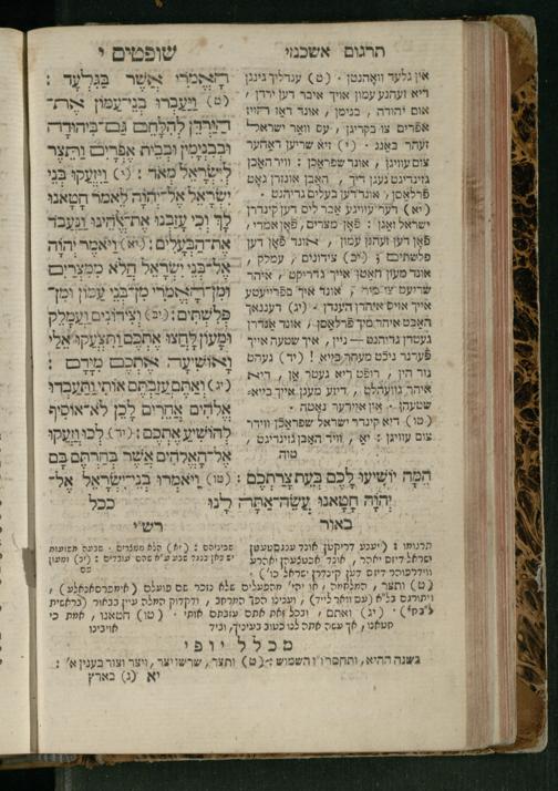 Sefer Shofṭim / ʿim targum Ashkenazi, u-veʾur, meturgam u-mevoʾar me-et R. Meʾir Oborniḳ, ṿe-hosafti bo pe. ... Rashi z.ts.l., ṿe-gam be-khol maḳom she-neʿemar be-perusho milat b.l.ʿa.z., ba be-tsedo ... perusho b.l.A. Ṿe-nilṿeh elaṿ pe. Mikhlal yofi ... ...ספר שופטים / עם תרגום אשכנזי, ובאור, מתורגם ומבואר מאת ר׳ מאיר אברניק, והוספתי בו פי׳... רש״י זצ״ל, וגם בכל מקום שנאמר בפירושו מלת בלע״ז, בא בצידו ... פירושו בל״א. ונלוה אליו פי׳ מכלל יופי ... ...
