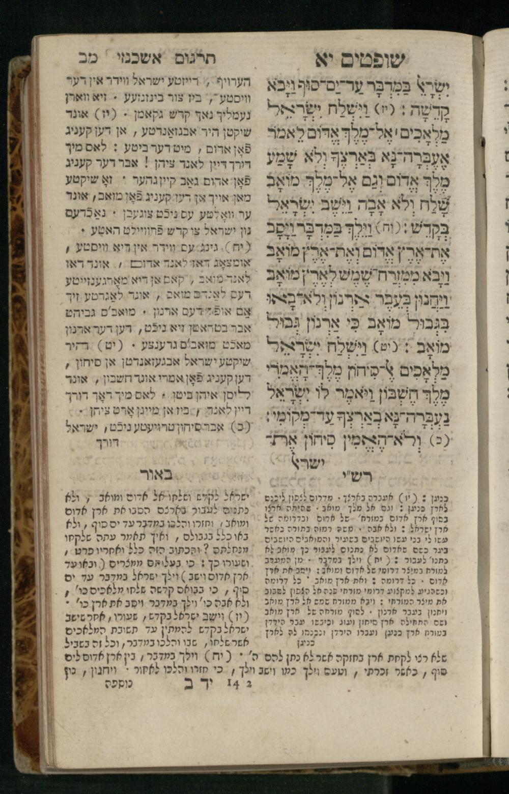 Sefer Shofṭim / ʿim targum Ashkenazi, u-veʾur, meturgam u-mevoʾar me-et R. Meʾir Oborniḳ, ṿe-hosafti bo pe. ... Rashi z.ts.l., ṿe-gam be-khol maḳom she-neʿemar be-perusho milat b.l.ʿa.z., ba be-tsedo ... perusho b.l.A. Ṿe-nilṿeh elaṿ pe. Mikhlal yofi ... ...ספר שופטים / עם תרגום אשכנזי, ובאור, מתורגם ומבואר מאת ר׳ מאיר אברניק, והוספתי בו פי׳... רש״י זצ״ל, וגם בכל מקום שנאמר בפירושו מלת בלע״ז, בא בצידו ... פירושו בל״א. ונלוה אליו פי׳ מכלל יופי ... ...