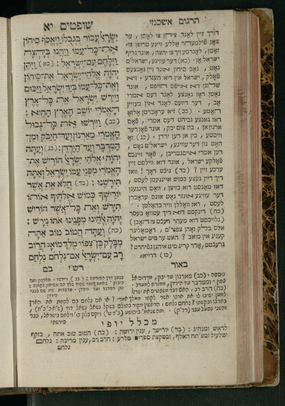 Sefer Shofṭim / ʿim targum Ashkenazi, u-veʾur, meturgam u-mevoʾar me-et R. Meʾir Oborniḳ, ṿe-hosafti bo pe. ... Rashi z.ts.l., ṿe-gam be-khol maḳom she-neʿemar be-perusho milat b.l.ʿa.z., ba be-tsedo ... perusho b.l.A. Ṿe-nilṿeh elaṿ pe. Mikhlal yofi ... ...ספר שופטים / עם תרגום אשכנזי, ובאור, מתורגם ומבואר מאת ר׳ מאיר אברניק, והוספתי בו פי׳... רש״י זצ״ל, וגם בכל מקום שנאמר בפירושו מלת בלע״ז, בא בצידו ... פירושו בל״א. ונלוה אליו פי׳ מכלל יופי ... ...